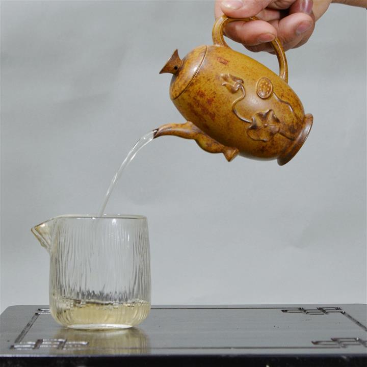 【泥料特點】砂土氣重,似淳實農民,日久使用,漸露鋒芒,養成變化,溫潤莊重。紫砂是壹種雙重氣孔結構的多孔性材質,氣孔微細,密度高。用紫砂壺沏茶,不失原味,且香不渙散,得茶之真香真味。紫砂使用越久,壺身色澤越發光亮照人,氣韻溫雅。紫砂壺長久使用器身會因撫摸擦拭,變得越發溫潤光澤。
