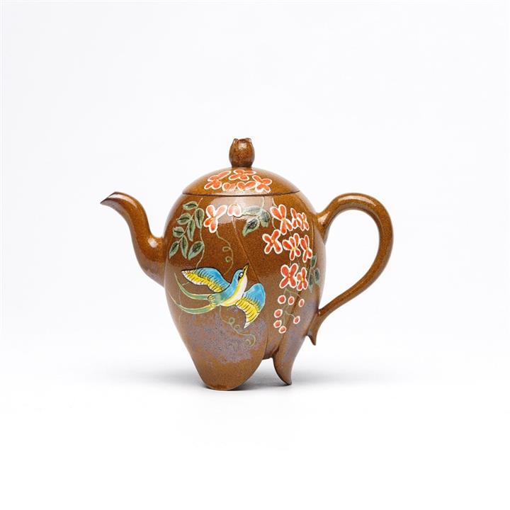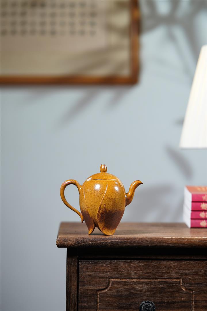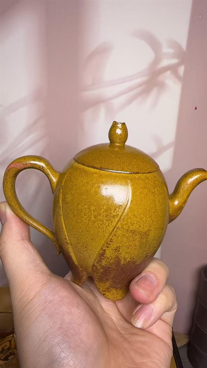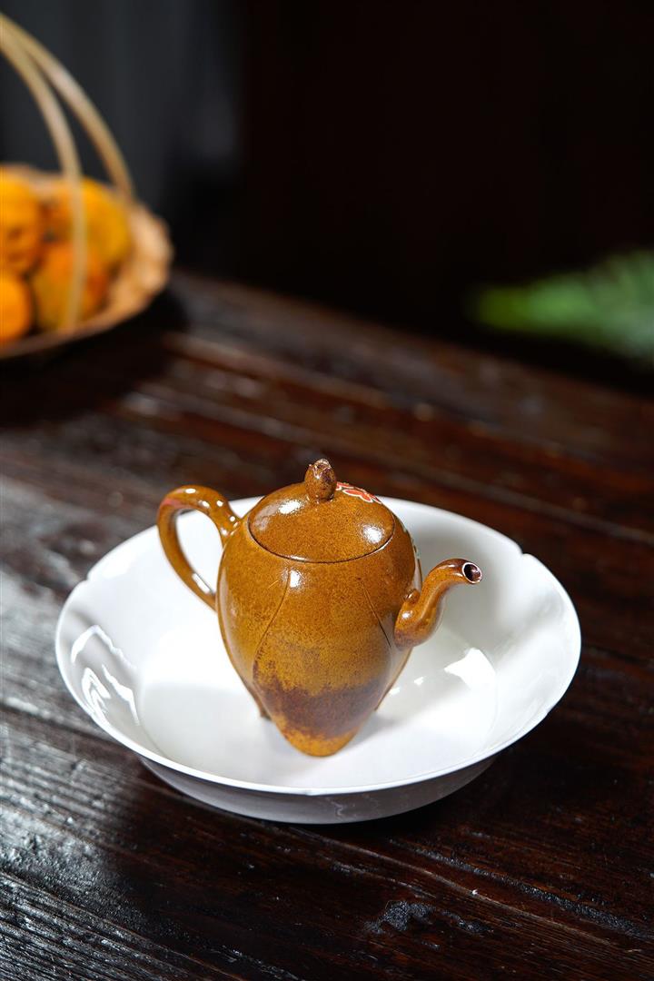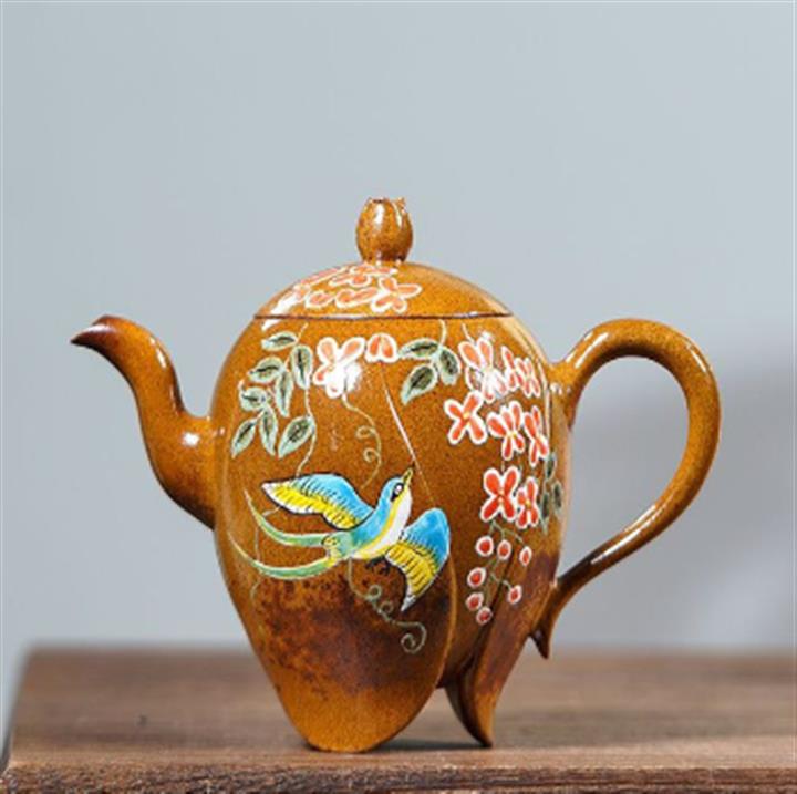 240cc原礦石黃彩繪雙龍潘壺茶壺POT8863