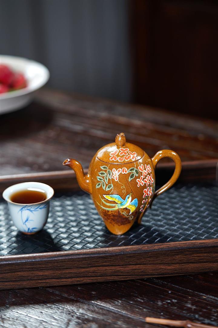 460cc原礦石黃彩繪笑櫻茶壺POT8856