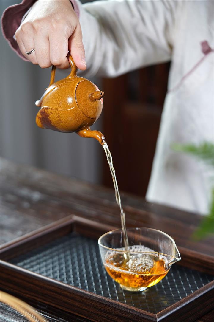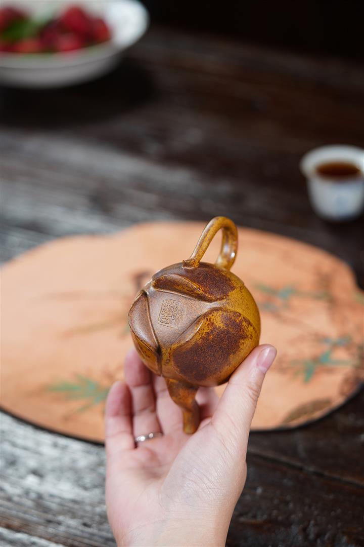 【泥料特點】砂土氣重,似淳實農民,日久使用,漸露鋒芒,養成變化,溫潤莊重。紫砂是壹種雙重氣孔結構的多孔性材質,氣孔微細,密度高。用紫砂壺沏茶,不失原味,且香不渙散,得茶之真香真味。紫砂使用越久,壺身色澤越發光亮照人,氣韻溫雅。紫砂壺長久使用器身會因撫摸擦拭,變得越發溫潤光澤。