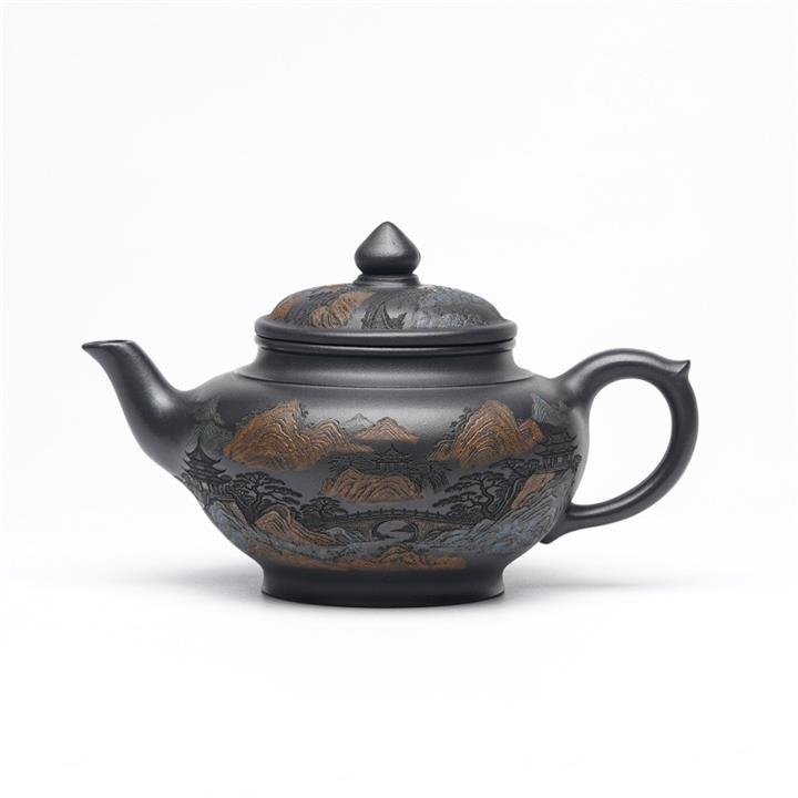 100cc原礦朱泥焐灰童趣茶壺POT8866
