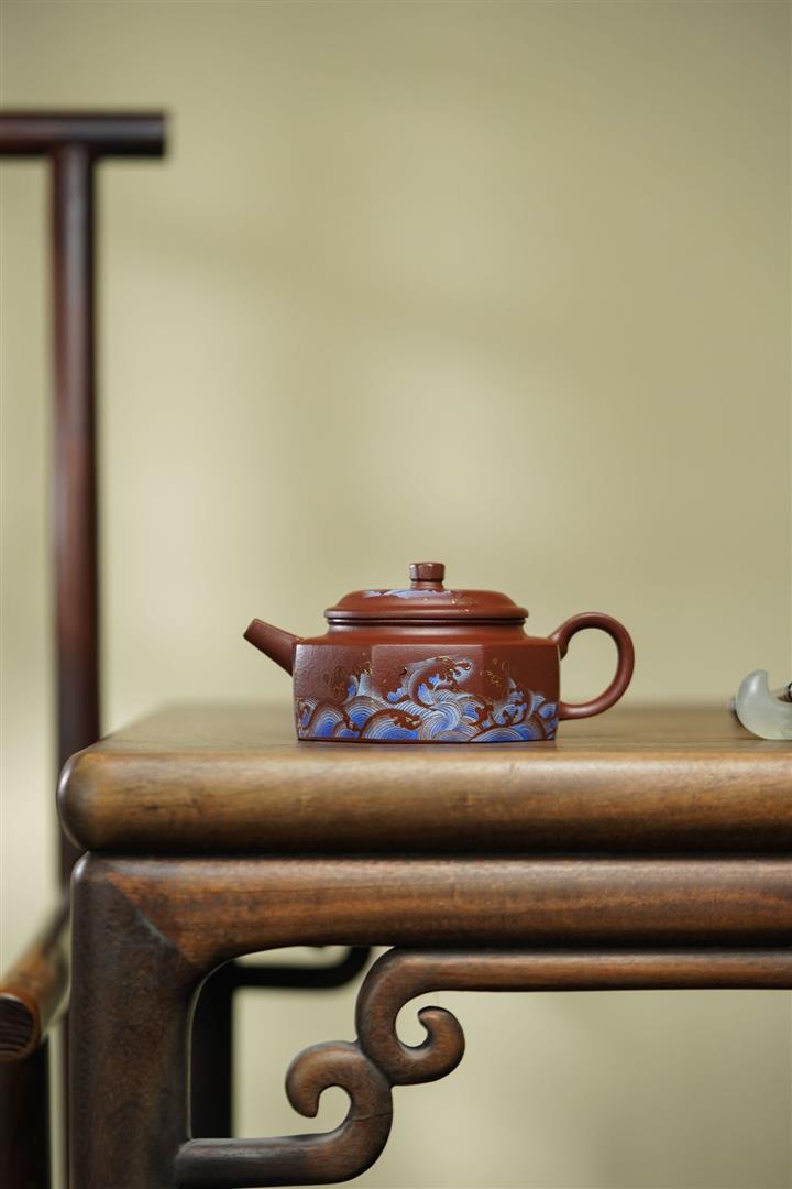 140cc原礦朱泥撒金漁翁茶壺POT8878