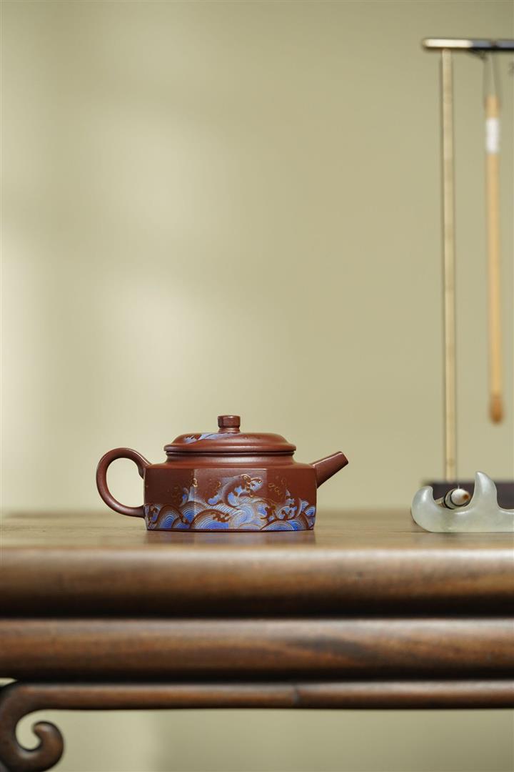 300cc 原礦龍血砂彩繪牛蓋德鐘茶壺POT8876