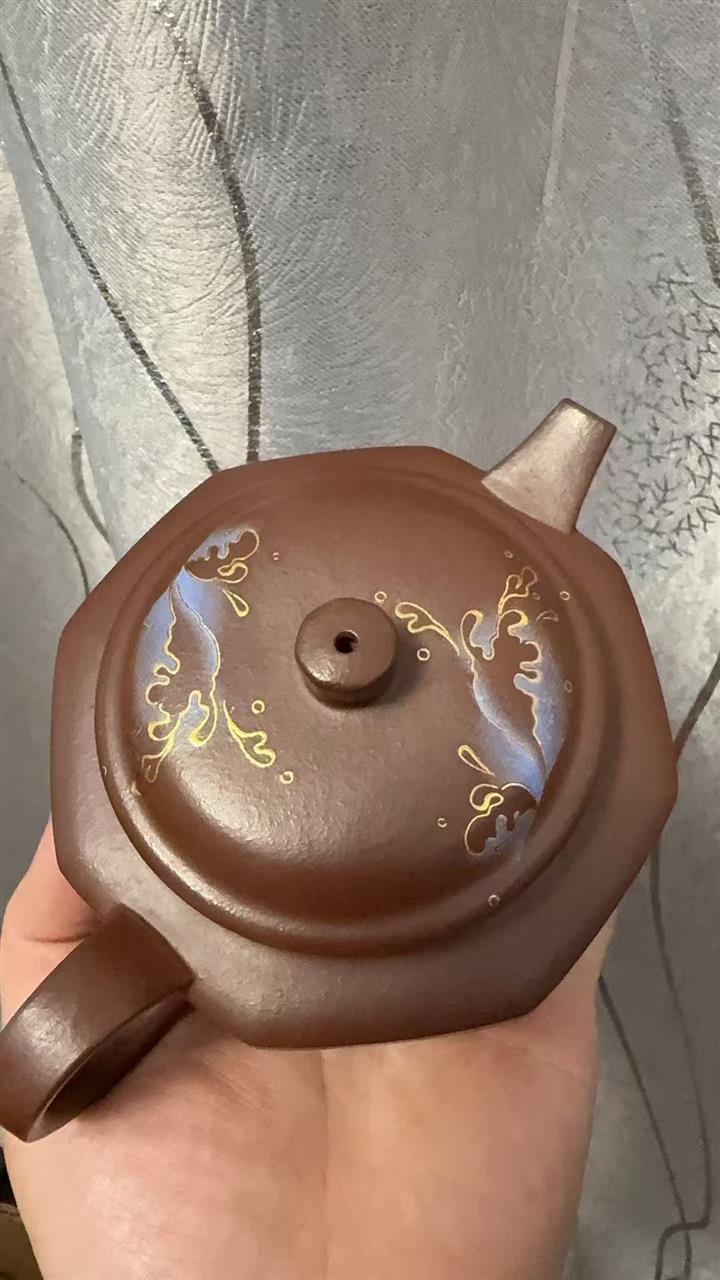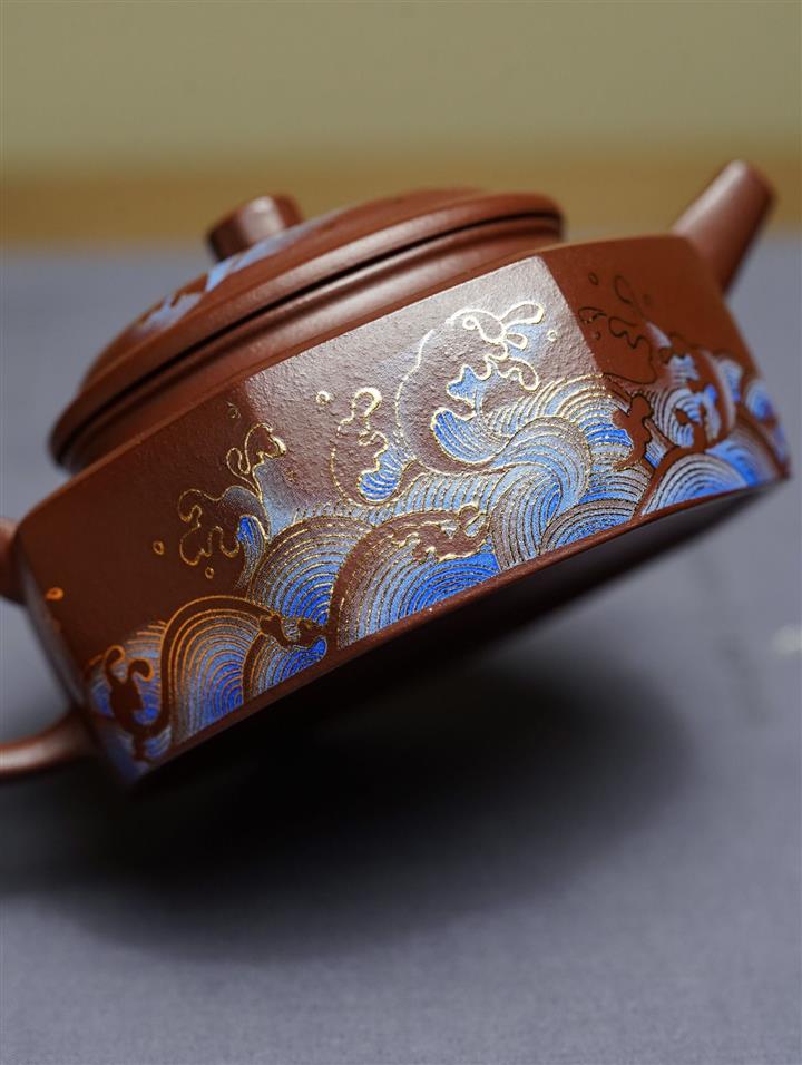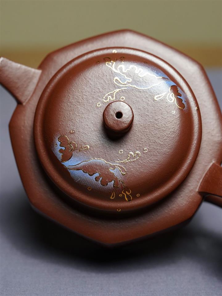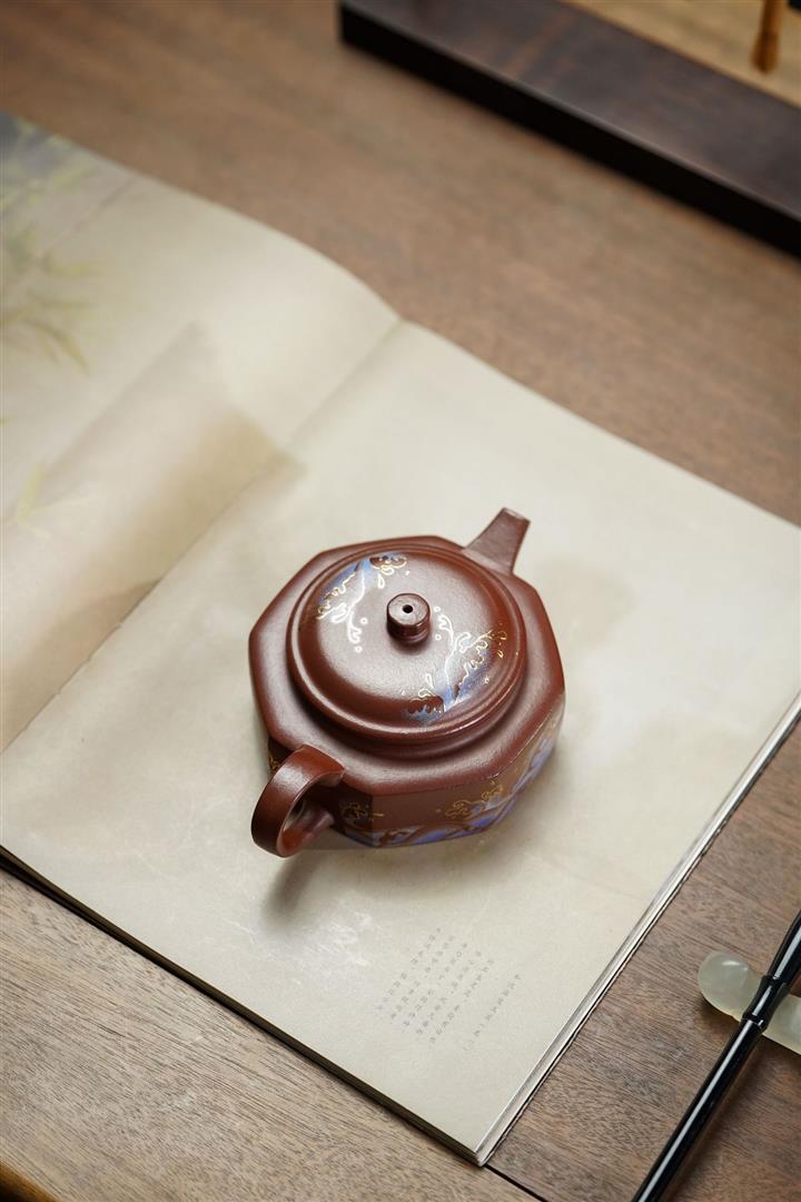 230cc原礦石黃泥彩繪六方潘壺茶壺POT8877