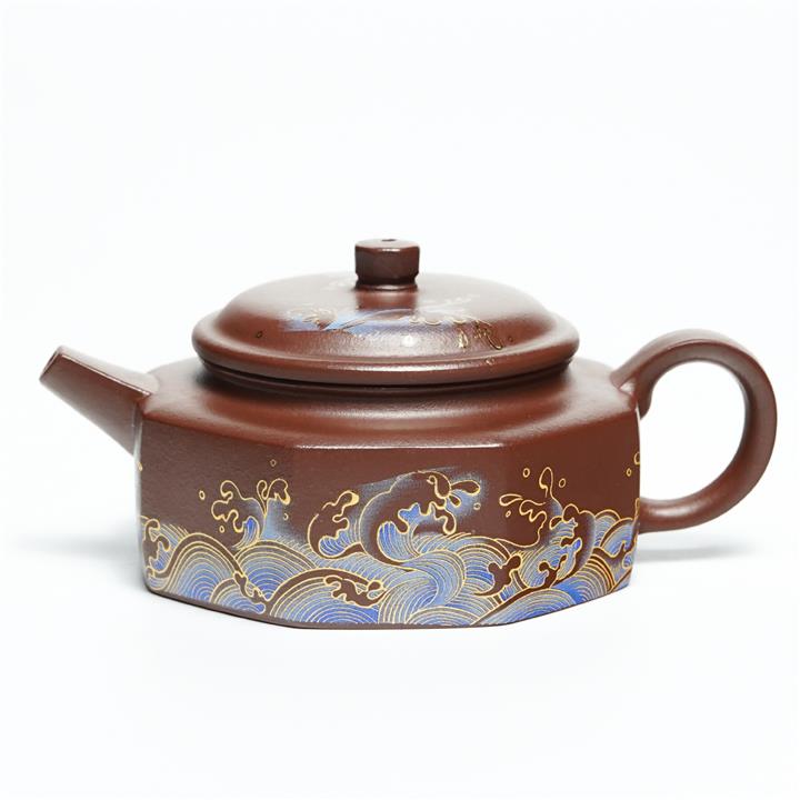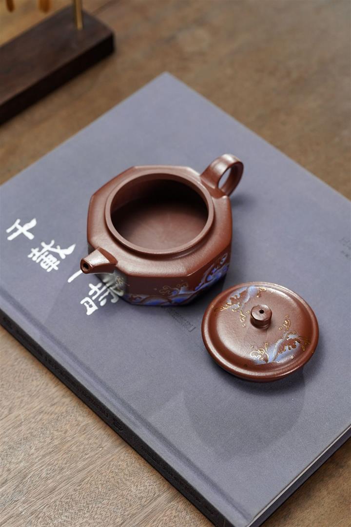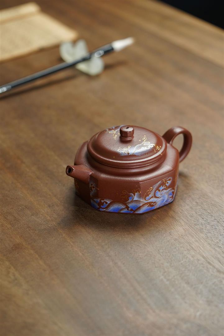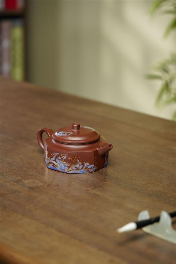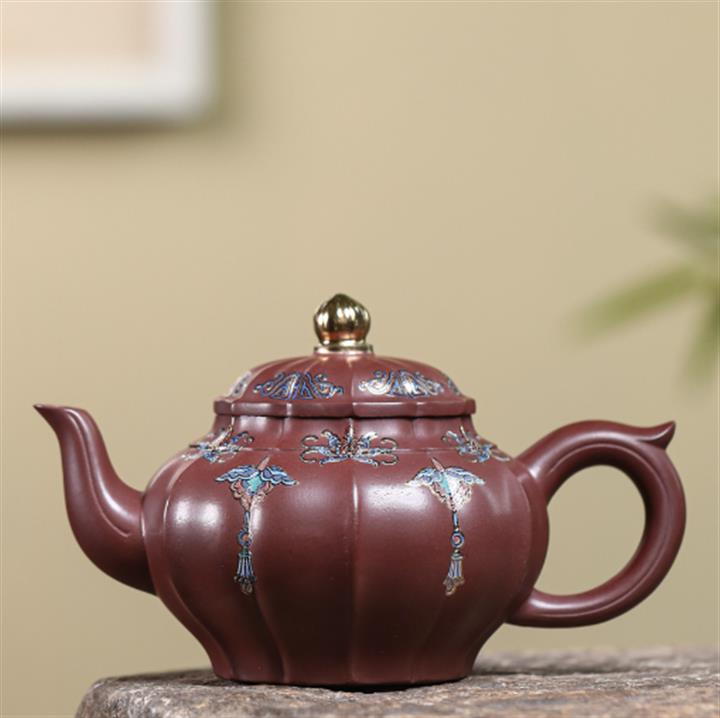 240cc原礦紫泥琺瑯彩八方扁德鐘茶壺POT8867