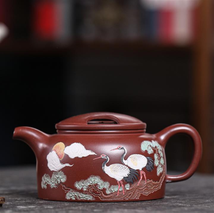 160cc原礦白段仙鶴呈祥茶壺POT8868