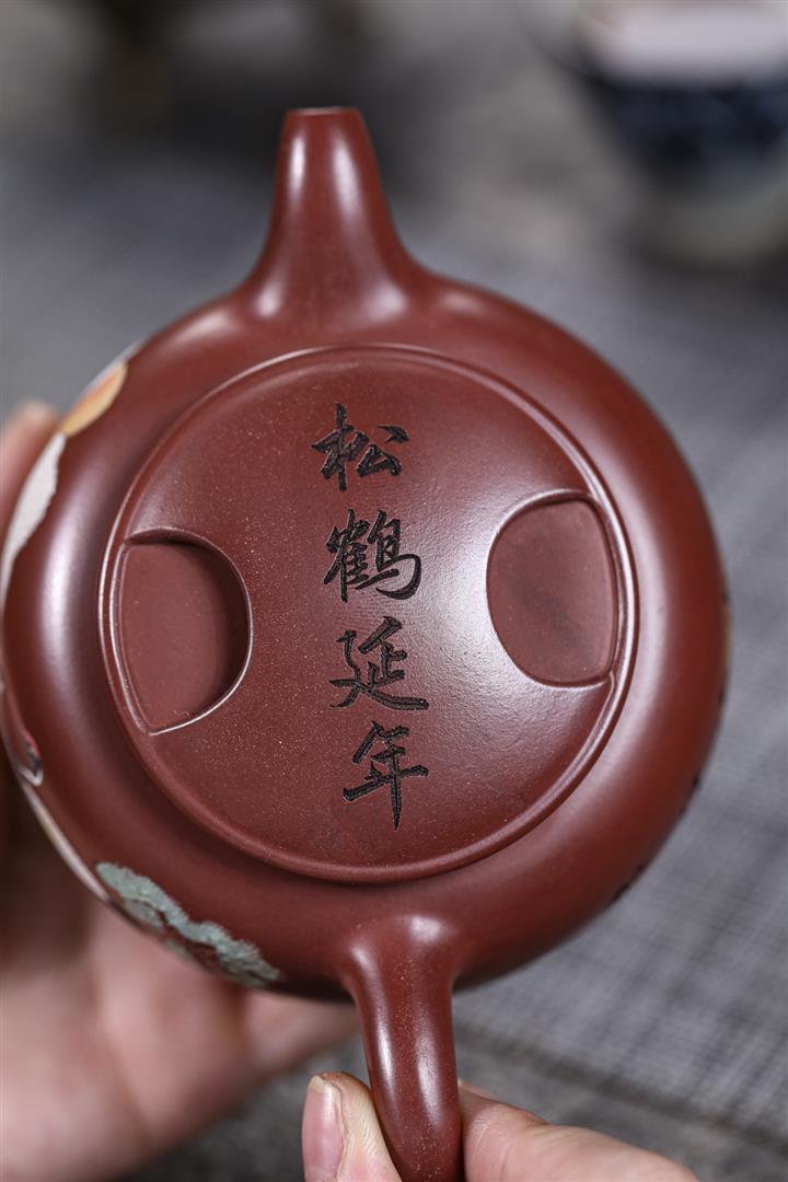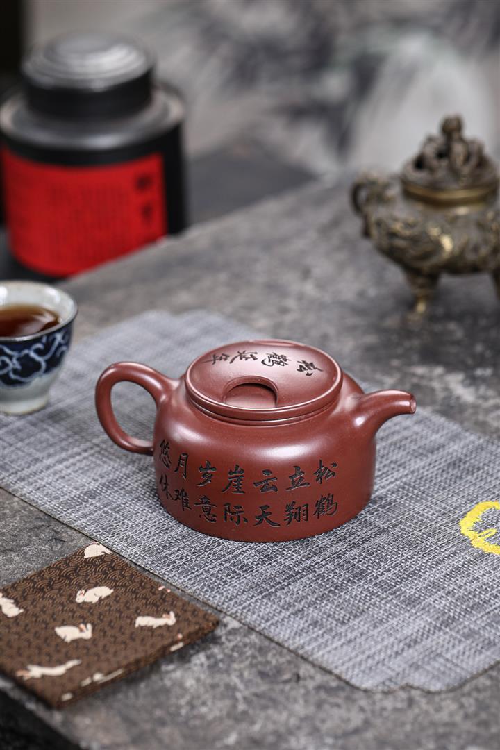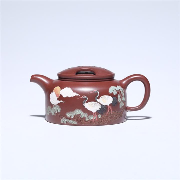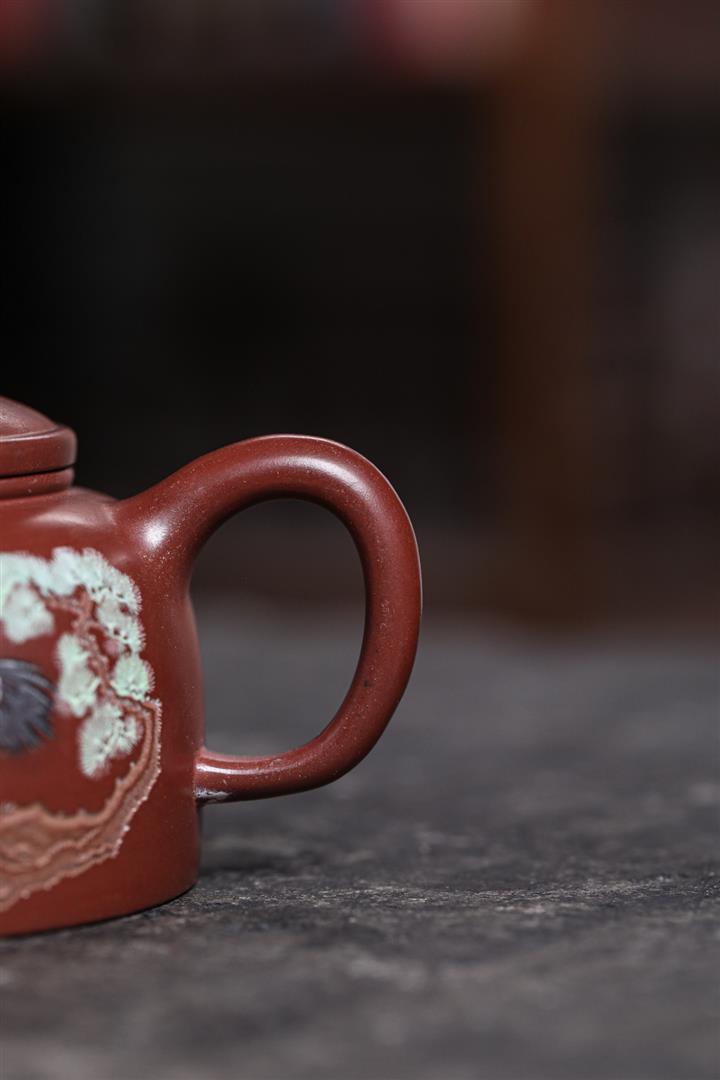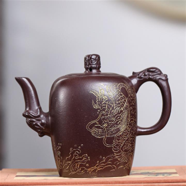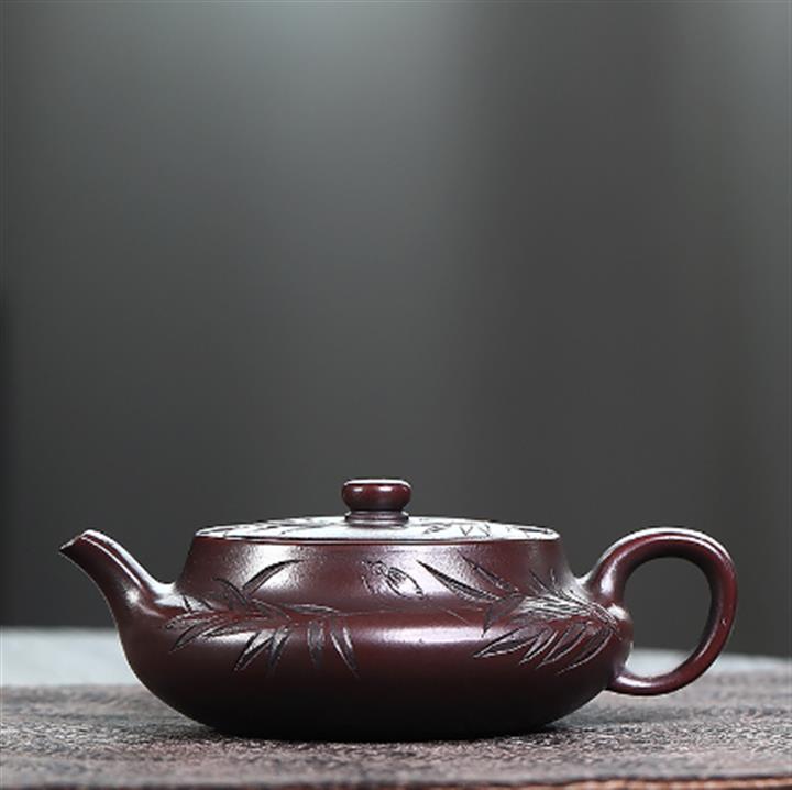 480cc原礦紫泥繪刻荷花汲思茶壺POT8886