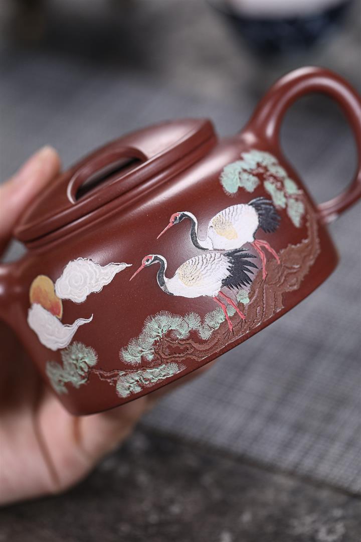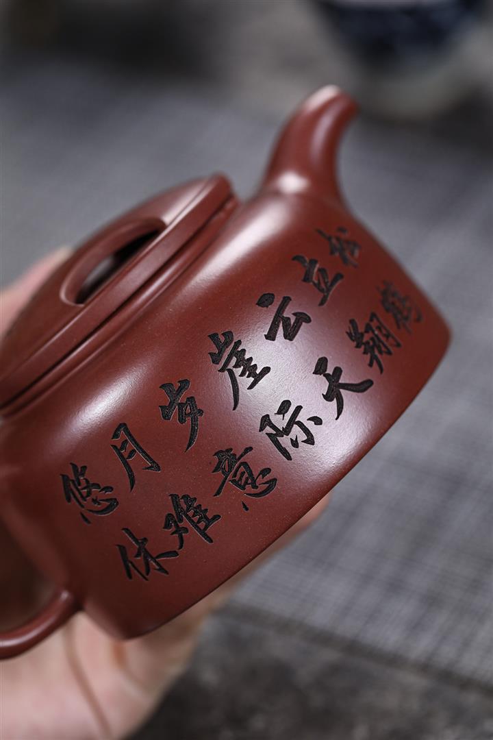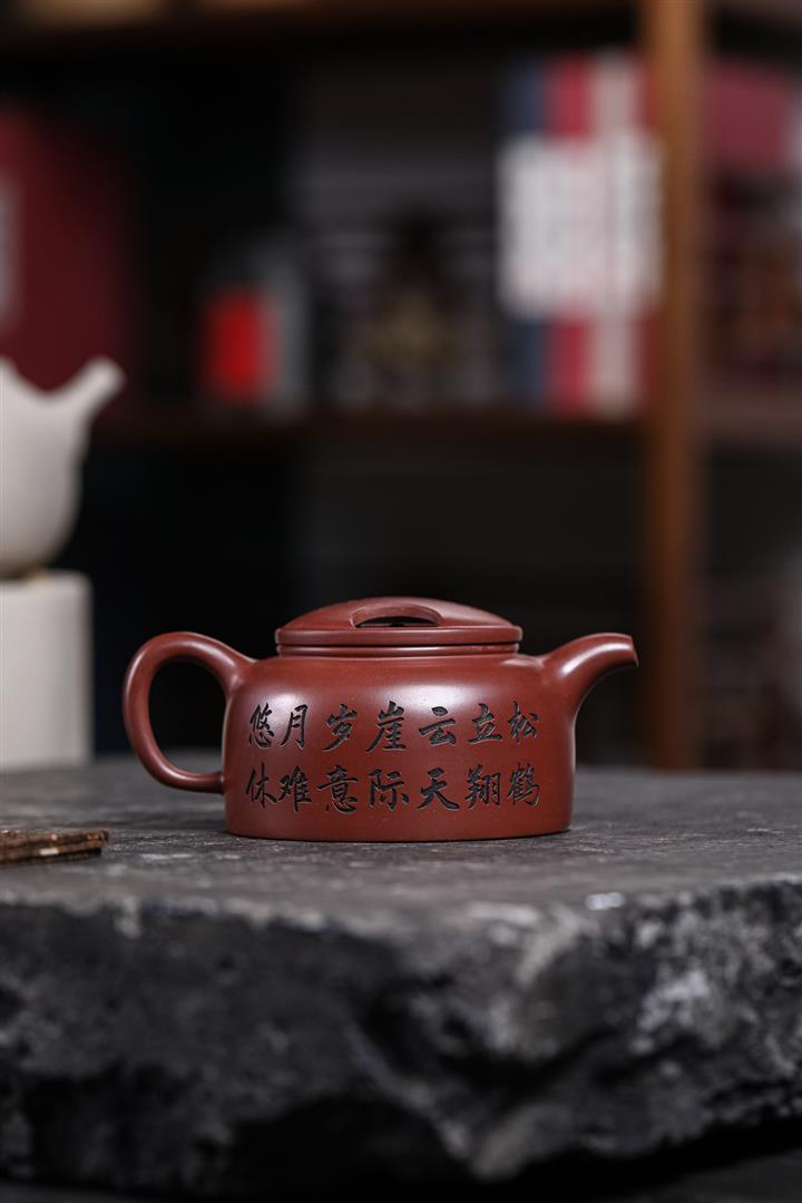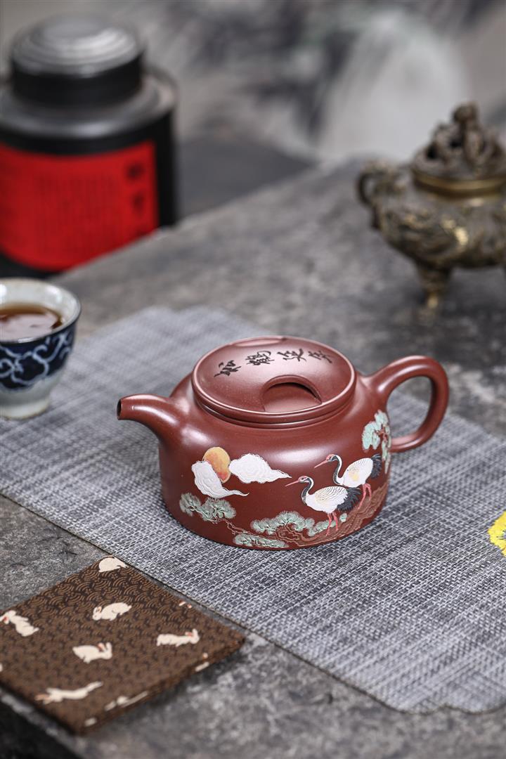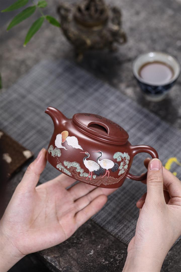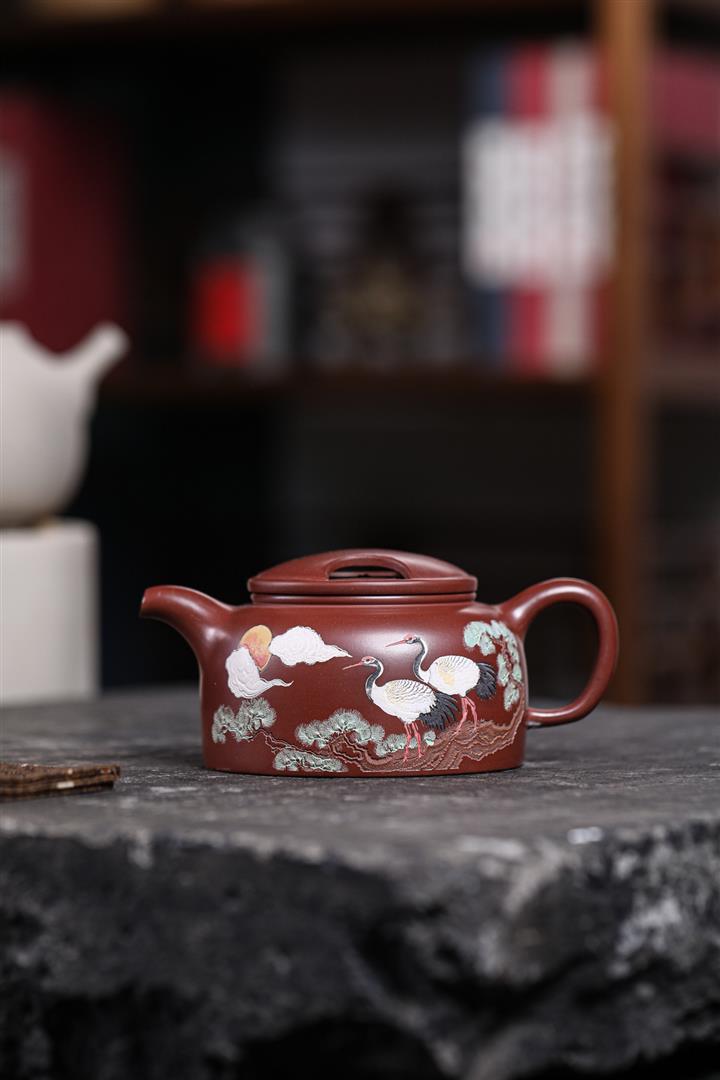 480cc原礦紫泥繪刻荷花汲思茶壺POT8886