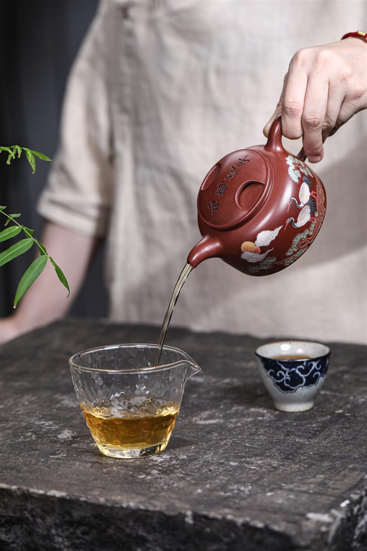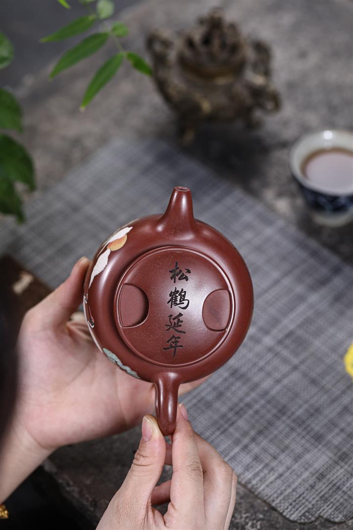 【泥料特點】砂土氣重,似淳實農民,日久使用,漸露鋒芒,養成變化,溫潤莊重。紫砂是壹種雙重氣孔結構的多孔性材質,氣孔微細,密度高。用紫砂壺沏茶,不失原味,且香不渙散,得茶之真香真味。紫砂使用越久,壺身色澤越發光亮照人,氣韻溫雅。紫砂壺長久使用器身會因撫摸擦拭,變得越發溫潤光澤。