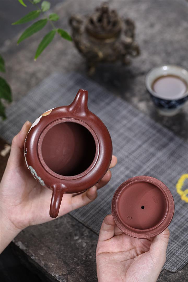 140cc原礦朱泥撒金漁翁茶壺POT8878