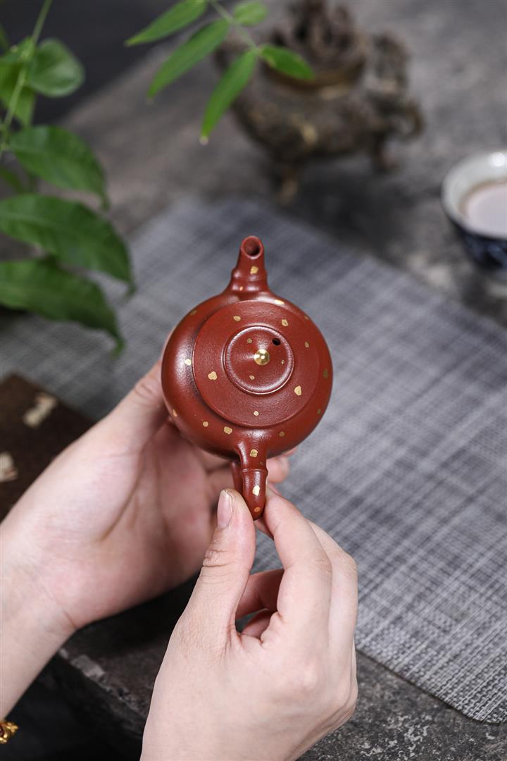 140cc原礦朱泥撒金漁翁茶壺POT8878