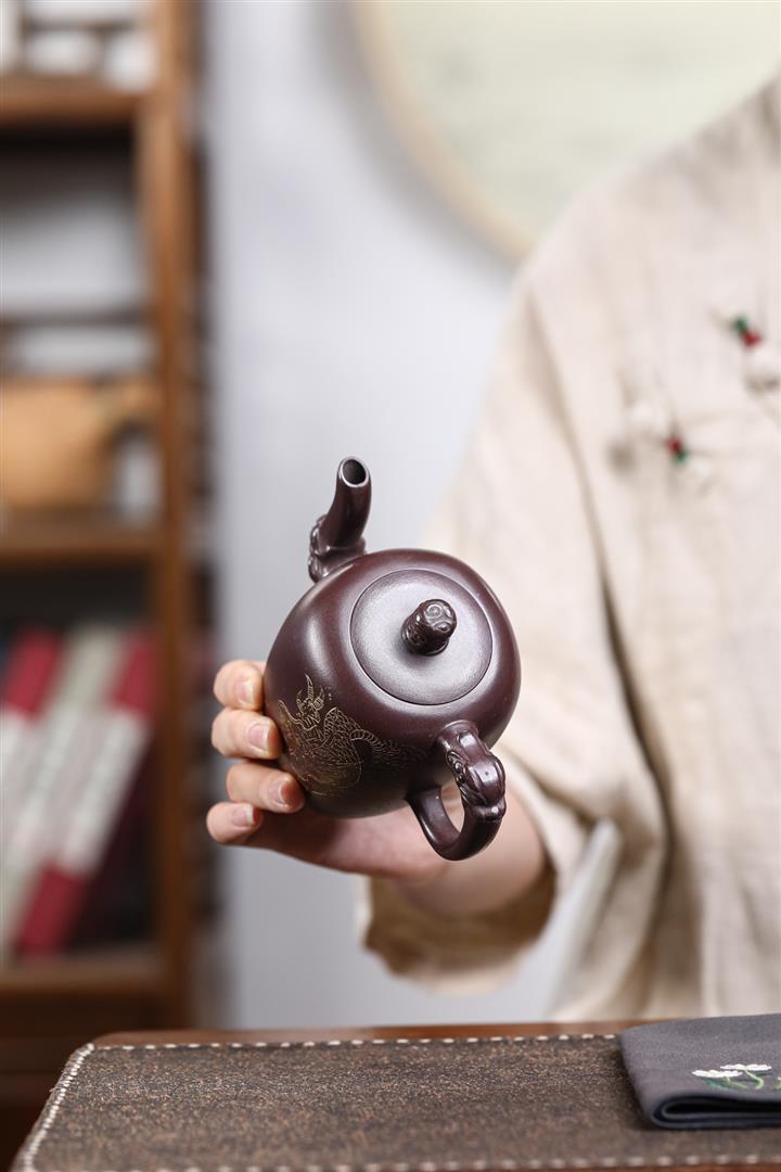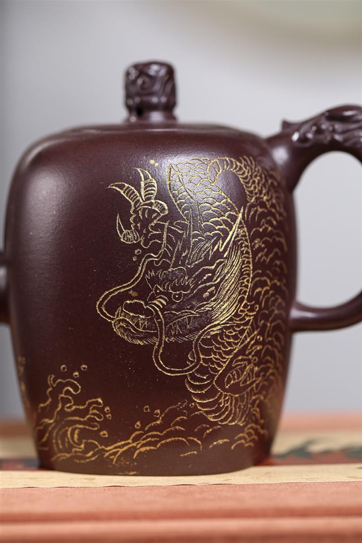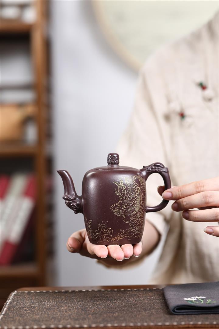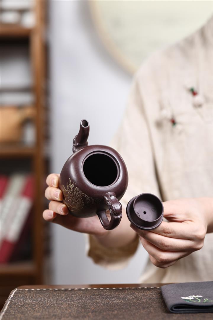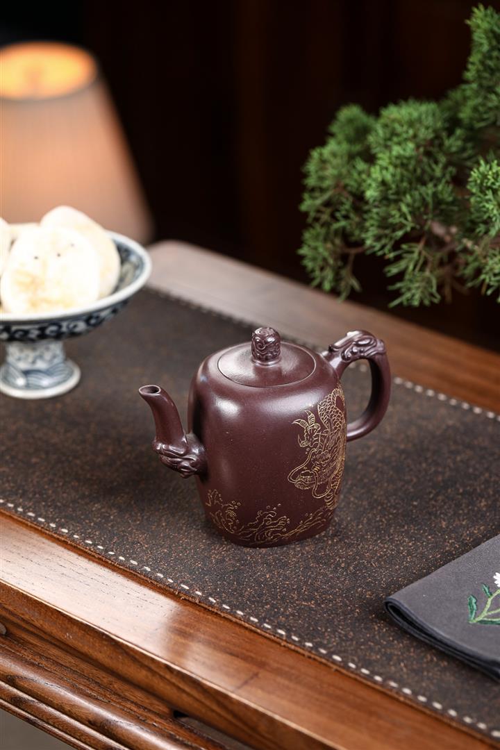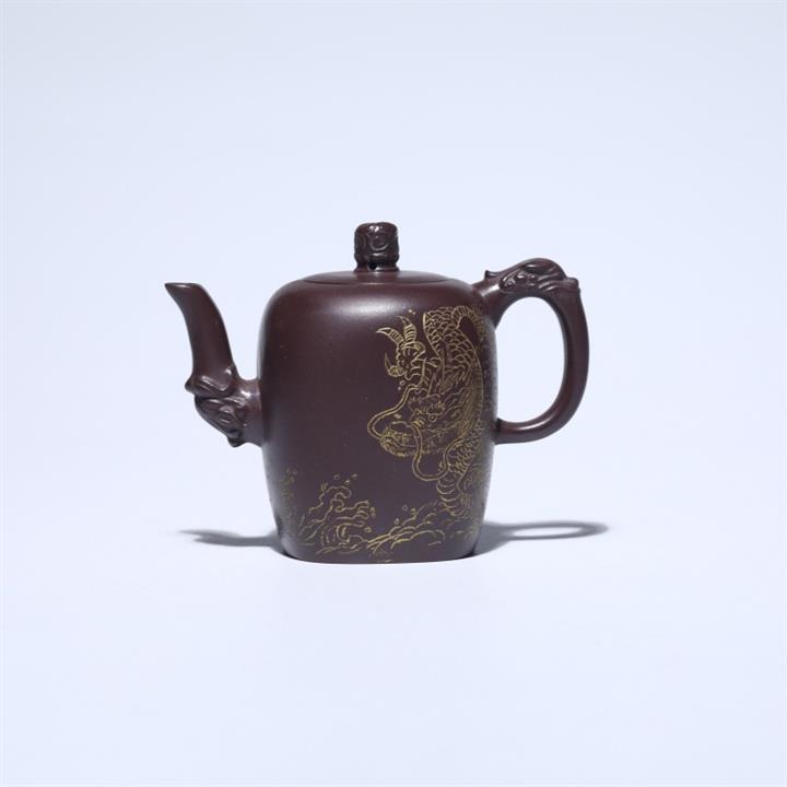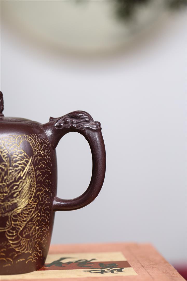 480cc原礦紫泥繪刻荷花汲思茶壺POT8886