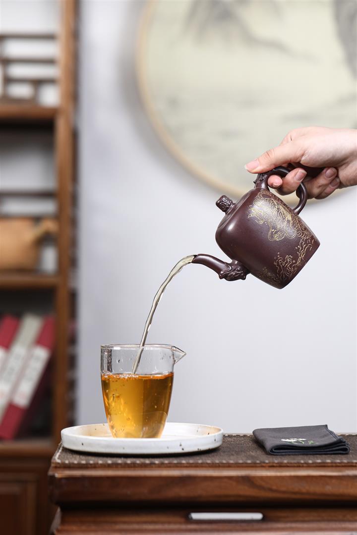 【泥料特點】砂土氣重,似淳實農民,日久使用,漸露鋒芒,養成變化,溫潤莊重。紫砂是壹種雙重氣孔結構的多孔性材質,氣孔微細,密度高。用紫砂壺沏茶,不失原味,且香不渙散,得茶之真香真味。紫砂使用越久,壺身色澤越發光亮照人,氣韻溫雅。紫砂壺長久使用器身會因撫摸擦拭,變得越發溫潤光澤。
