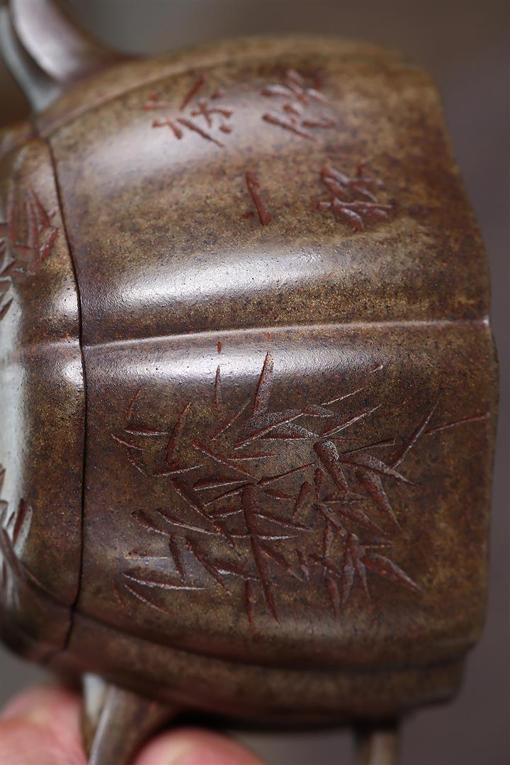 340cc原礦本山綠泥繪刻四方壺茶壺POT8887