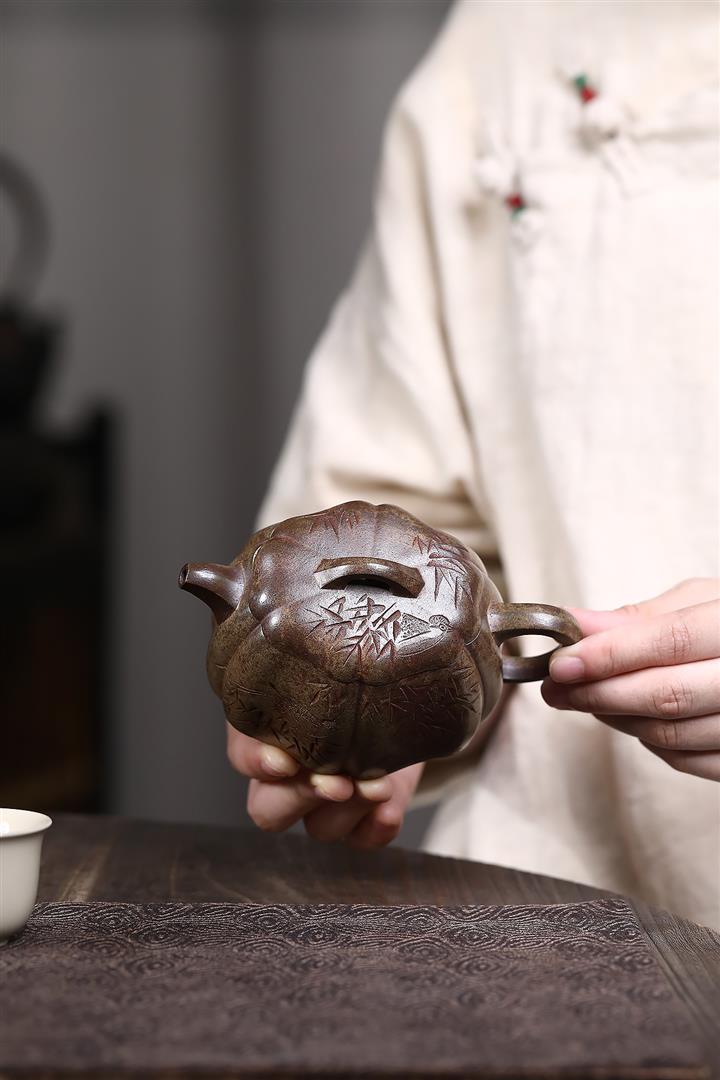 180cc 原礦降坡泥繪刻文旦茶壺POT8888