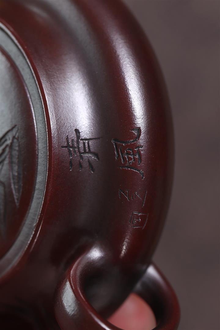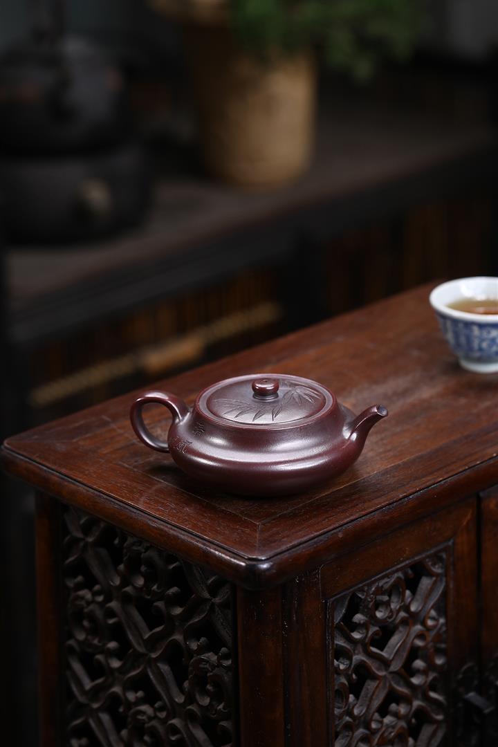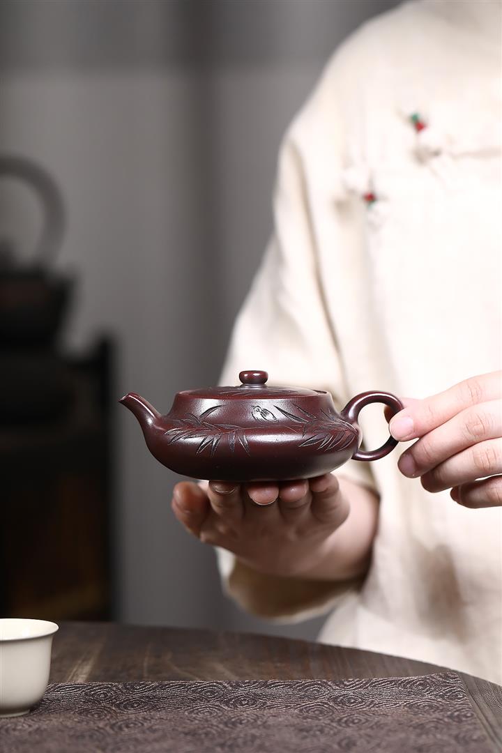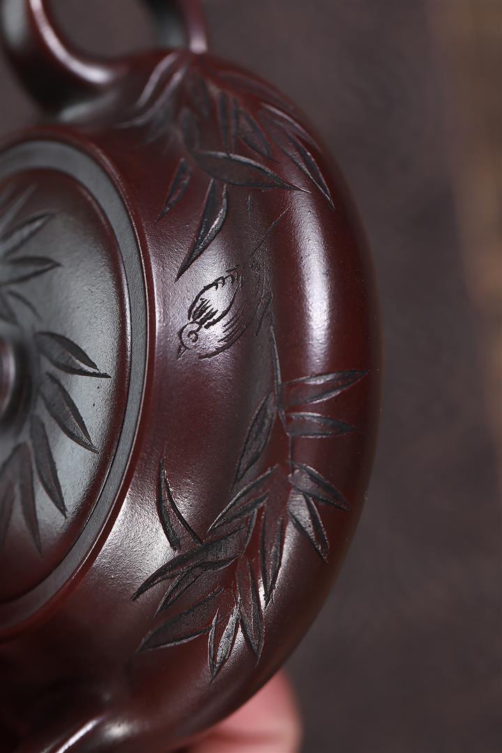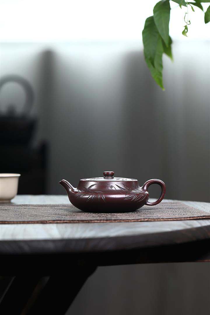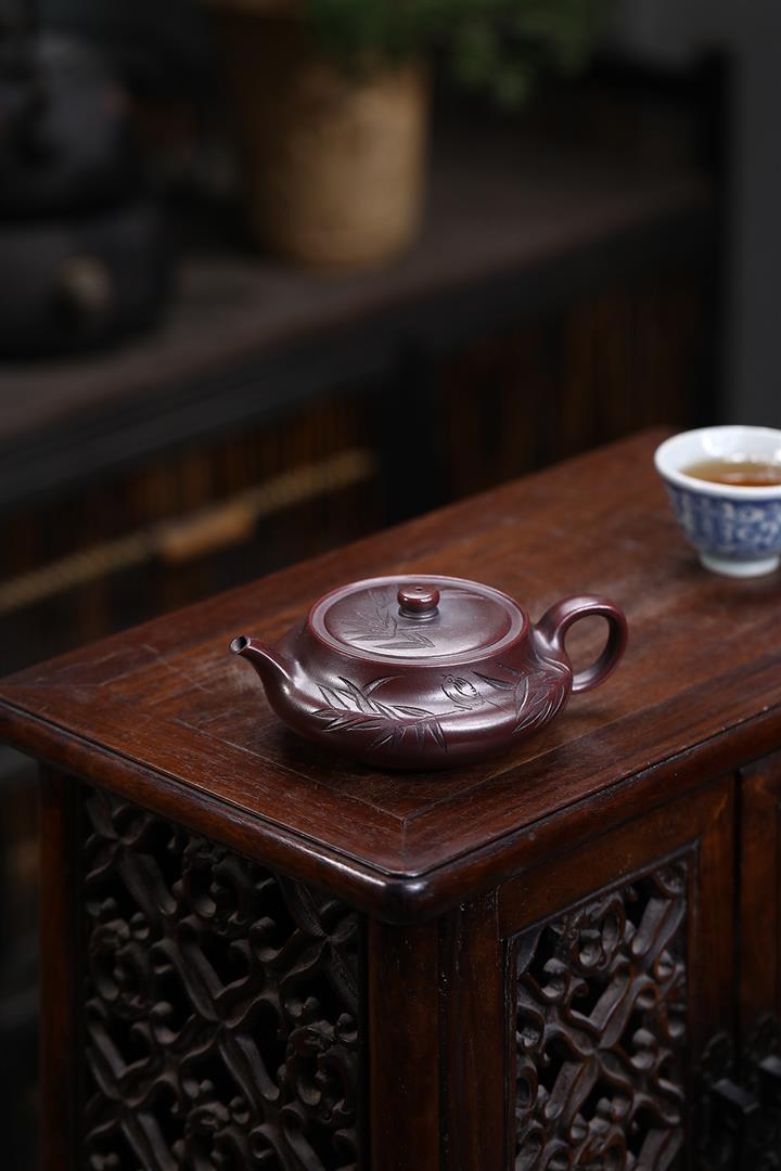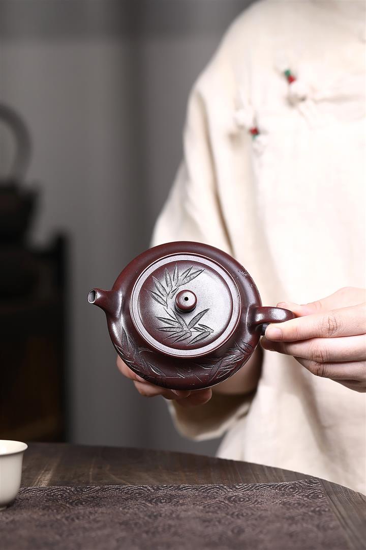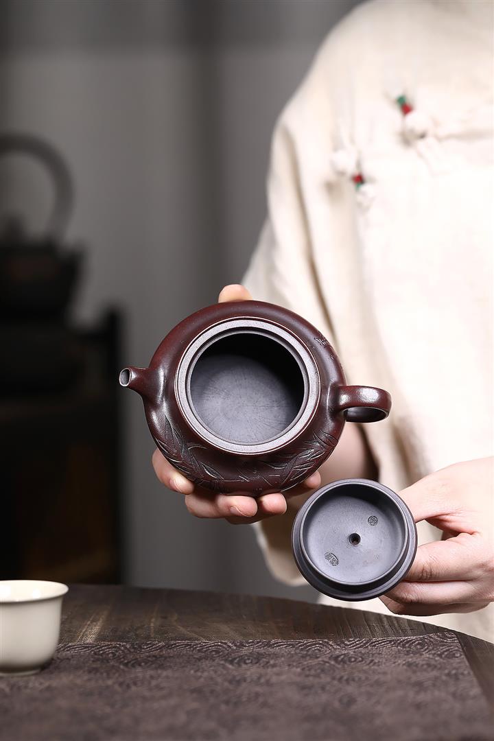 480cc原礦紫泥繪刻荷花汲思茶壺POT8886