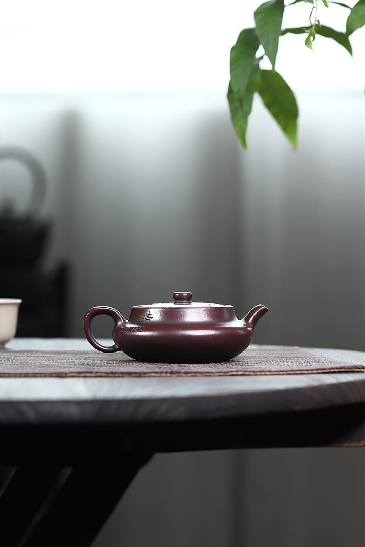 【泥料特點】砂土氣重,似淳實農民,日久使用,漸露鋒芒,養成變化,溫潤莊重。紫砂是壹種雙重氣孔結構的多孔性材質,氣孔微細,密度高。用紫砂壺沏茶,不失原味,且香不渙散,得茶之真香真味。紫砂使用越久,壺身色澤越發光亮照人,氣韻溫雅。紫砂壺長久使用器身會因撫摸擦拭,變得越發溫潤光澤。