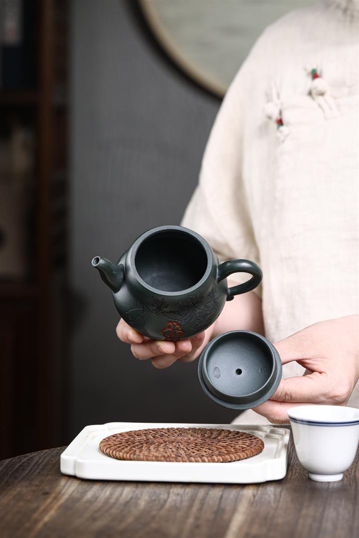480cc原礦紫泥繪刻荷花汲思茶壺POT8886