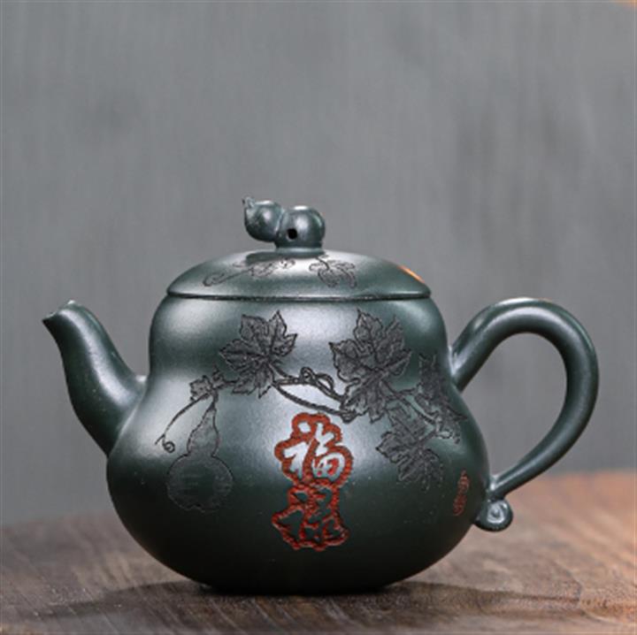 280cc原礦墨綠泥福祿茶壺POT8884