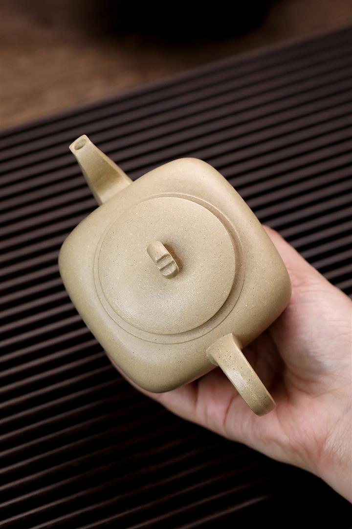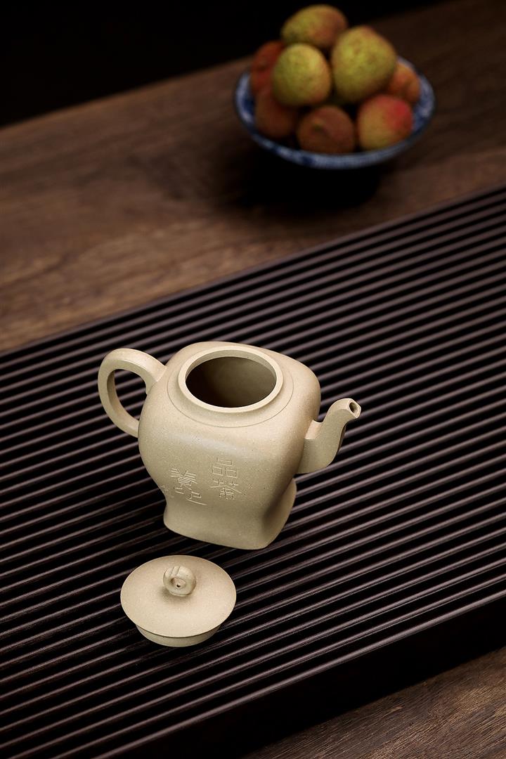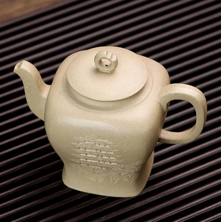 340cc原礦本山綠泥繪刻四方壺茶壺POT8887