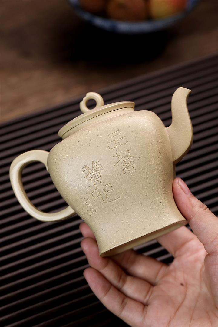 【作品介紹】此款壺形線條流暢,壺把,壺嘴,壺身壹氣呵成栩栩如生,是收藏把玩的好壺,泥料色澤古樸典雅,日久使用,漸露鋒芒,養成變化快,溫潤莊重,用其泡茶,使用的年代久,壺身就溫潤,泡出來的茶湯也就醇郁芳馨。