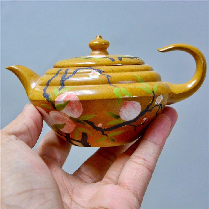 160cc原礦段泥松脂燒壽桃飛把茶壺POT8893