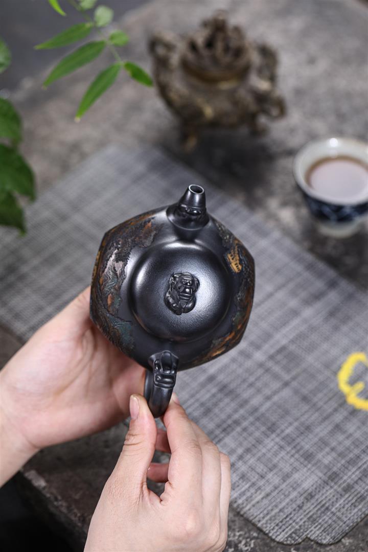 230cc原礦石黃泥彩繪六方潘壺POT8900