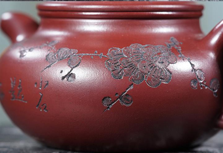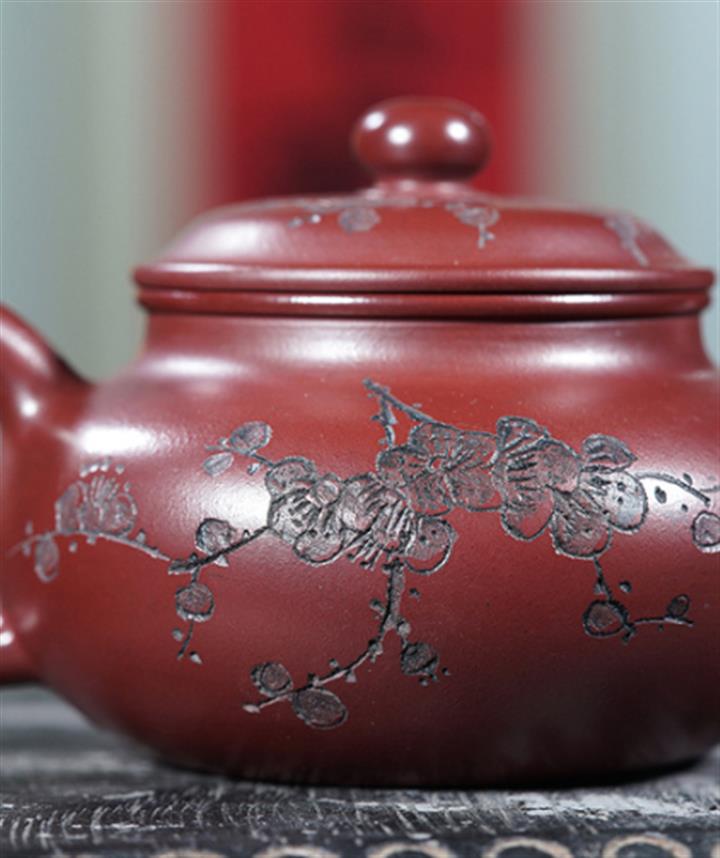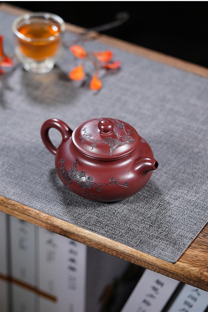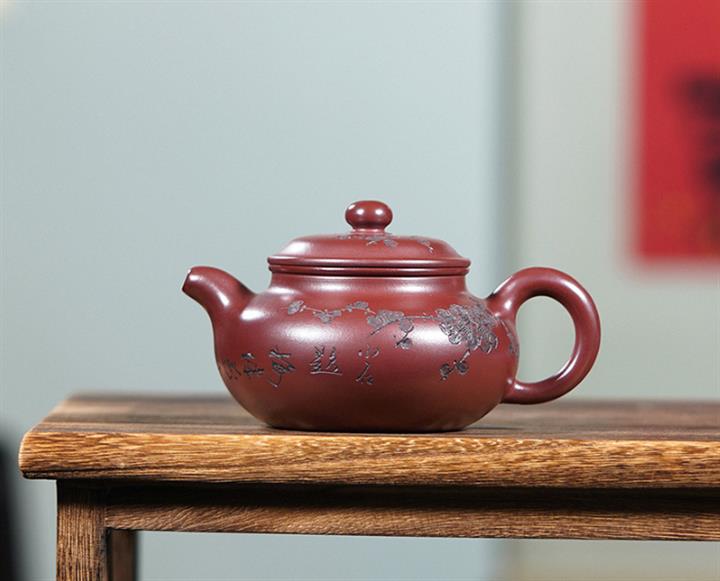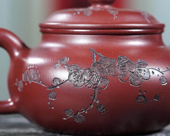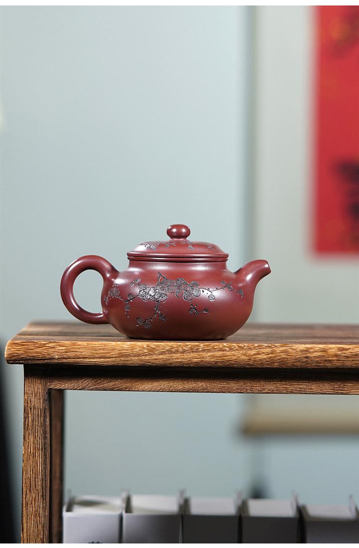 220cc原礦龍血砂刻梅花茶壺POT8902