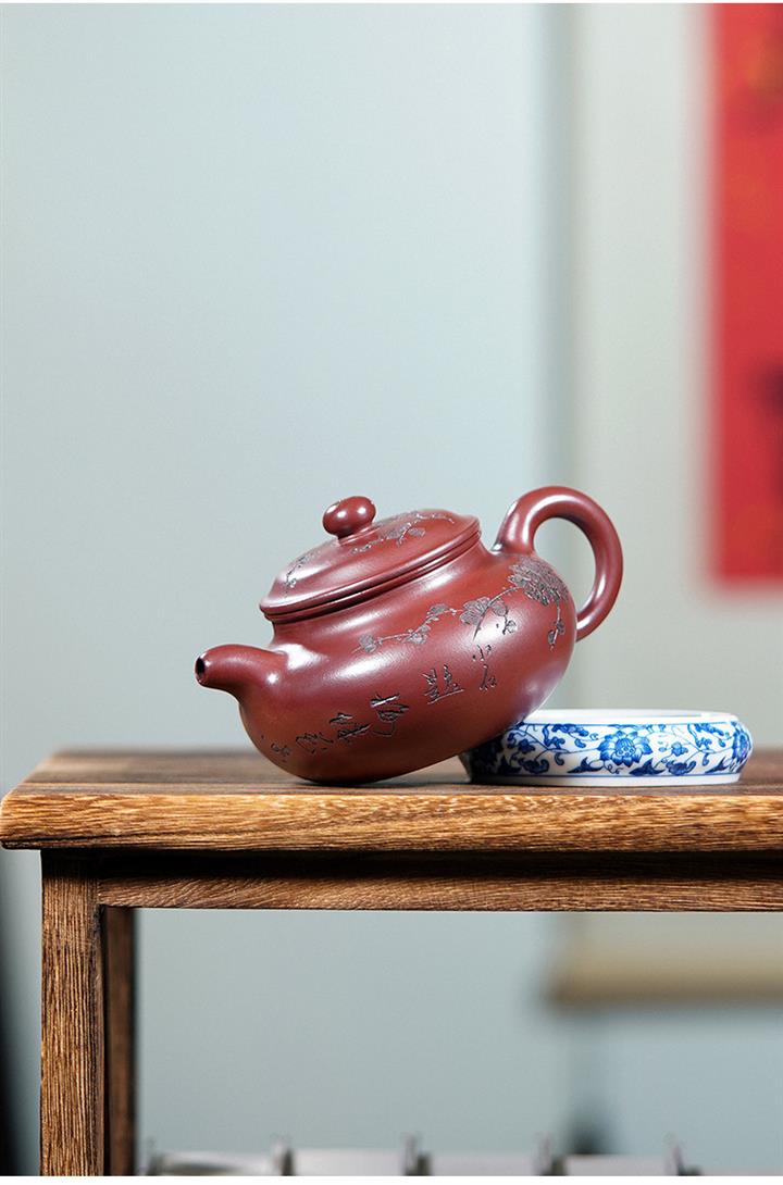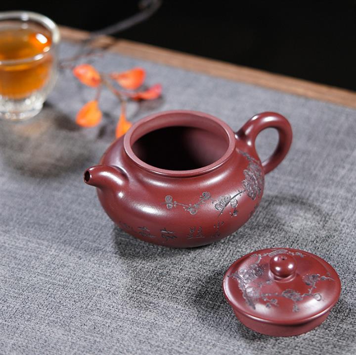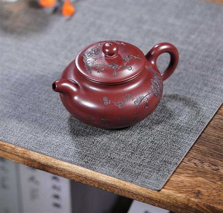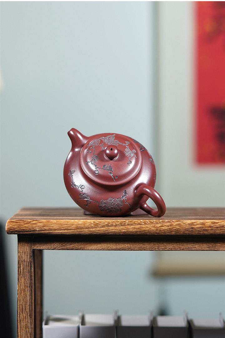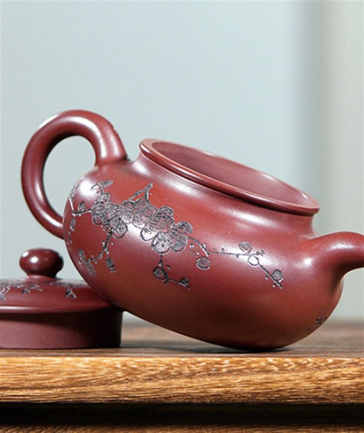 220cc原礦龍血砂刻梅花茶壺POT8902
