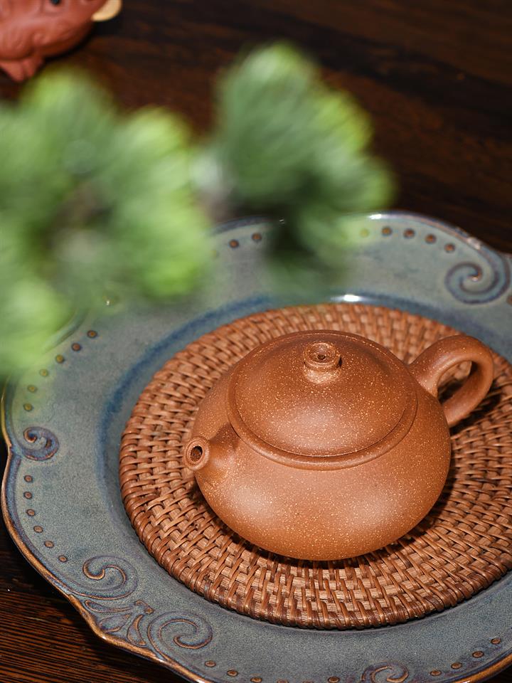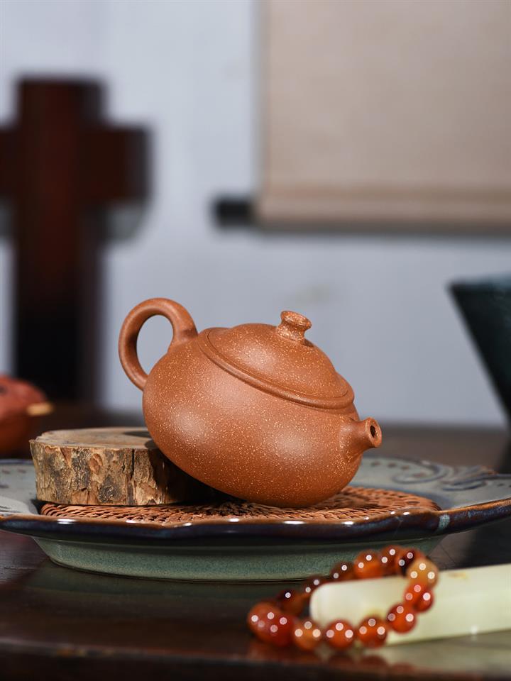 【泥料特點】砂土氣重,似淳實農民,日久使用,漸露鋒芒,養成變化,溫潤莊重。紫砂是壹種雙重氣孔結構的多孔性材質,氣孔微細,密度高。用紫砂壺沏茶,不失原味,且香不渙散,得茶之真香真味。紫砂使用越久,壺身色澤越發光亮照人,氣韻溫雅。紫砂壺長久使用器身會因撫摸擦拭,變得越發溫潤光澤。