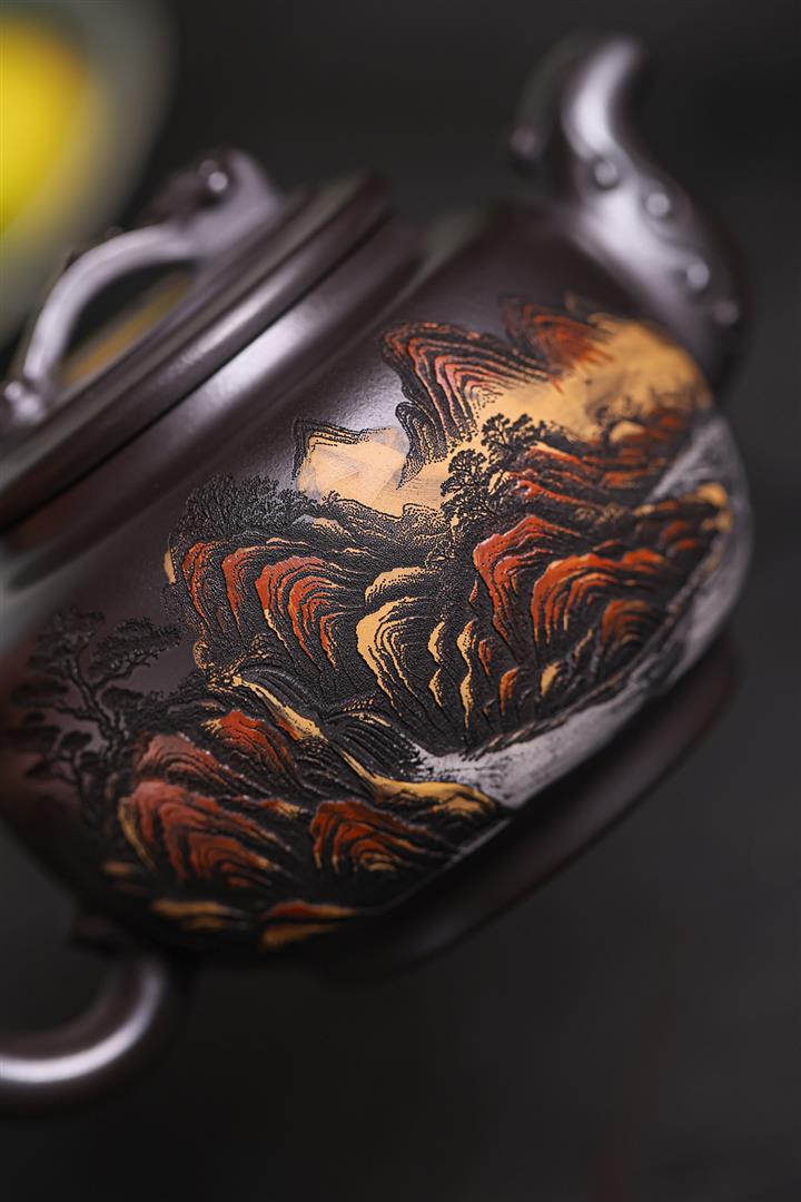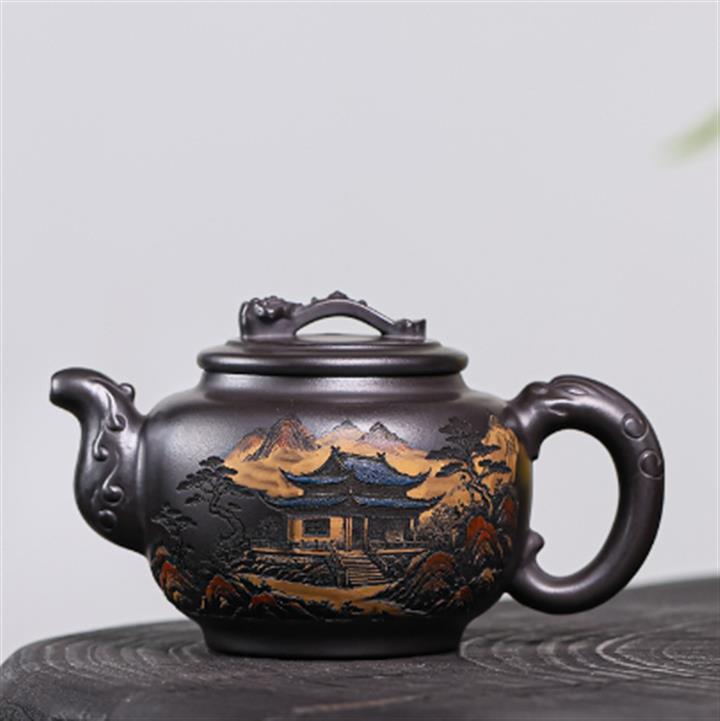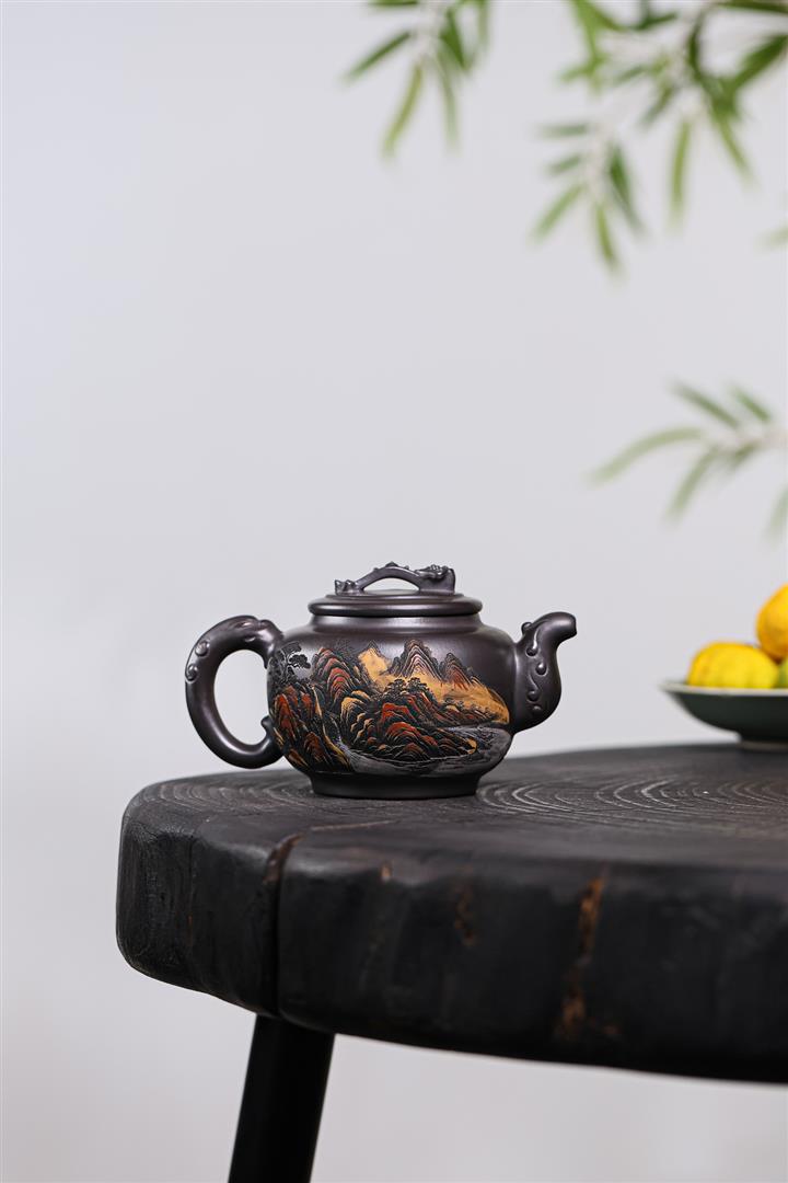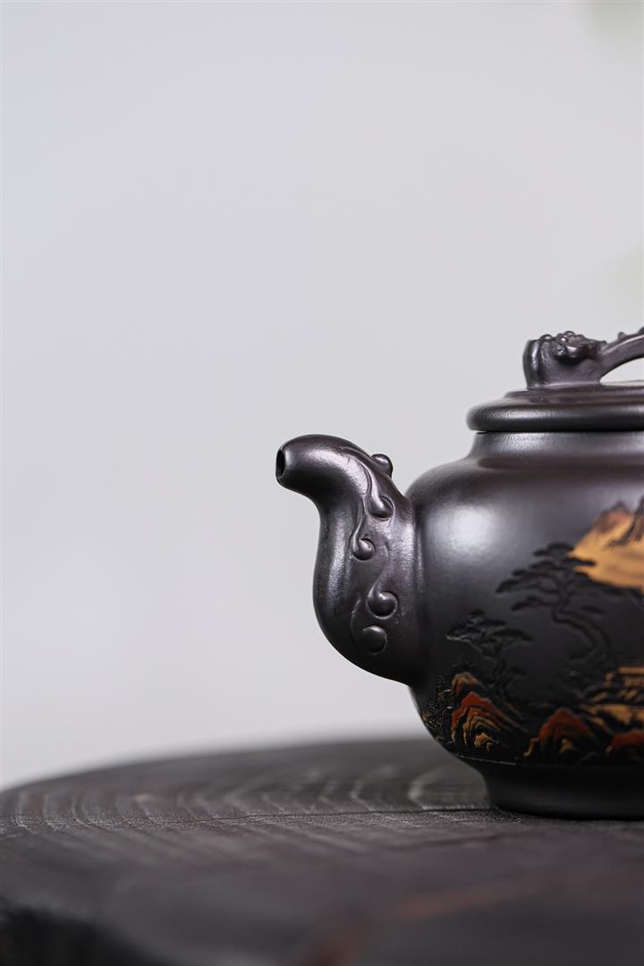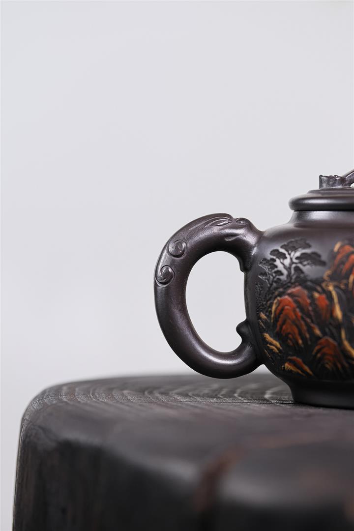 330cc原礦龍血砂孔雀振羽半月茶壺POT8913