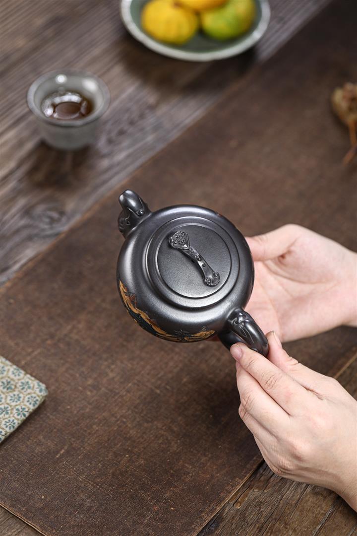 150cc原礦黃金段泥玉兔奔月茶壺POT8917