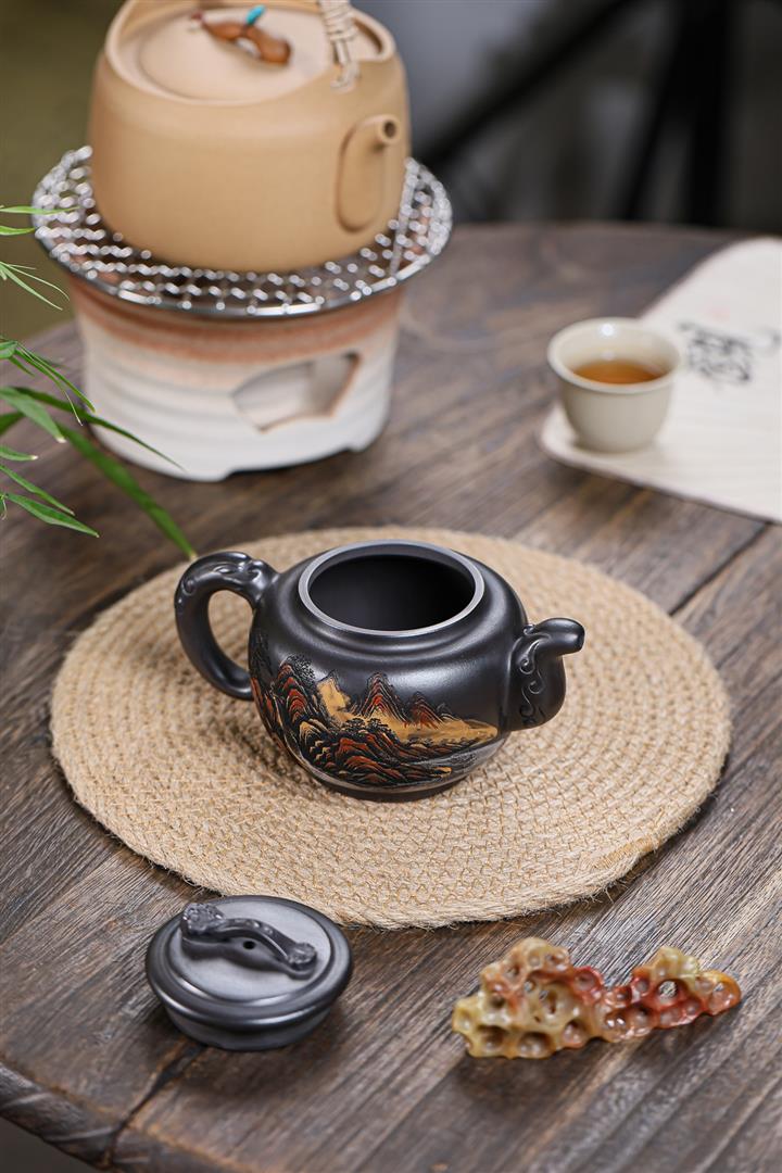 250cc原礦雲霧沈香筋紋線圓茶壺POT8908