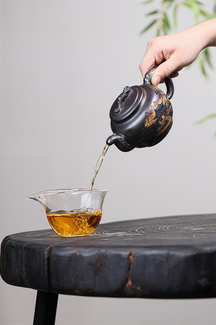【泥料特點】砂土氣重,似淳實農民,日久使用,漸露鋒芒,養成變化,溫潤莊重。紫砂是壹種雙重氣孔結構的多孔性材質,氣孔微細,密度高。用紫砂壺沏茶,不失原味,且香不渙散,得茶之真香真味。紫砂使用越久,壺身色澤越發光亮照人,氣韻溫雅。紫砂壺長久使用器身會因撫摸擦拭,變得越發溫潤光澤。