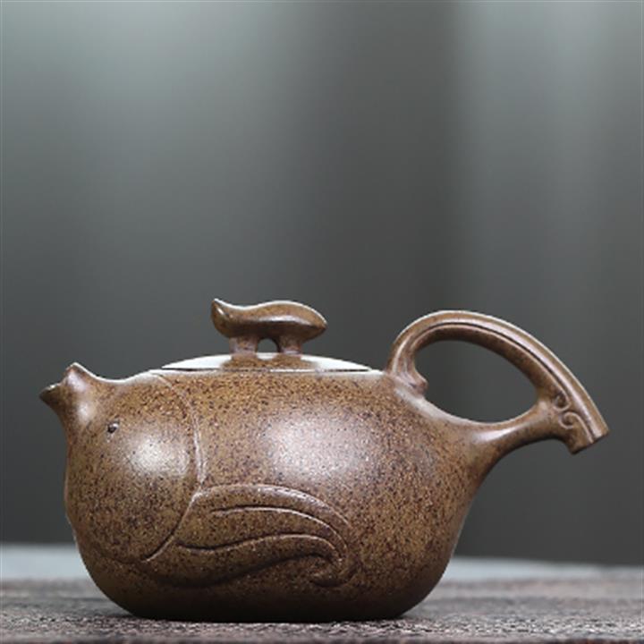 330cc原礦龍血砂孔雀振羽半月茶壺POT8913