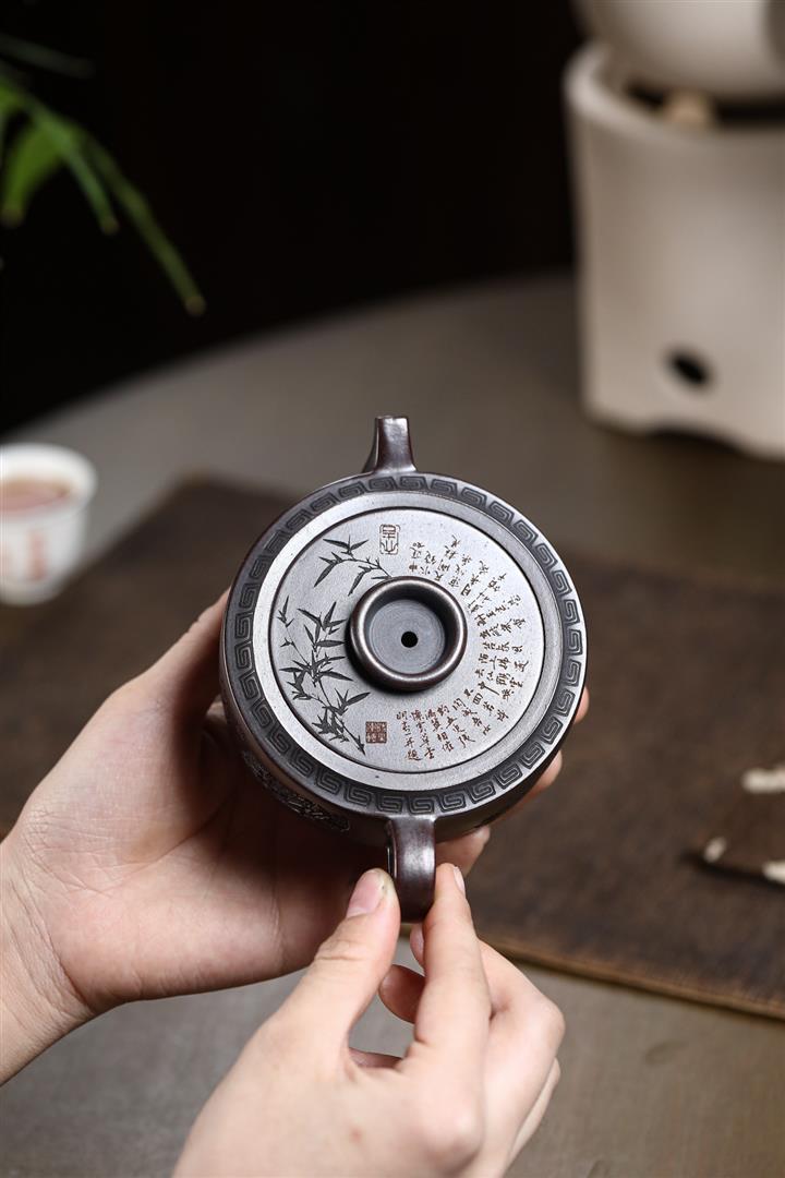 【作品介紹】此款壺形線條流暢,壺把,壺嘴,壺身壹氣呵成栩栩如生,是收藏把玩的好壺,泥料色澤古樸典雅,日久使用,漸露鋒芒,養成變化快,溫潤莊重,用其泡茶,使用的年代久,壺身就溫潤,泡出來的茶湯也就醇郁芳馨。