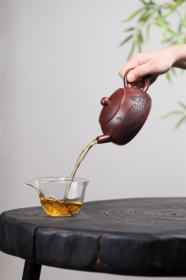 【泥料特點】砂土氣重,似淳實農民,日久使用,漸露鋒芒,養成變化,溫潤莊重。紫砂是壹種雙重氣孔結構的多孔性材質,氣孔微細,密度高。用紫砂壺沏茶,不失原味,且香不渙散,得茶之真香真味。紫砂使用越久,壺身色澤越發光亮照人,氣韻溫雅。紫砂壺長久使用器身會因撫摸擦拭,變得越發溫潤光澤。