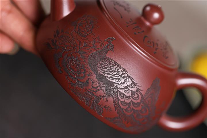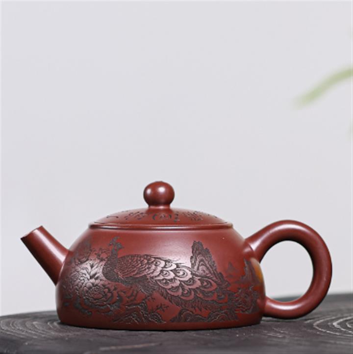 330cc原礦龍血砂孔雀振羽半月茶壺POT8913