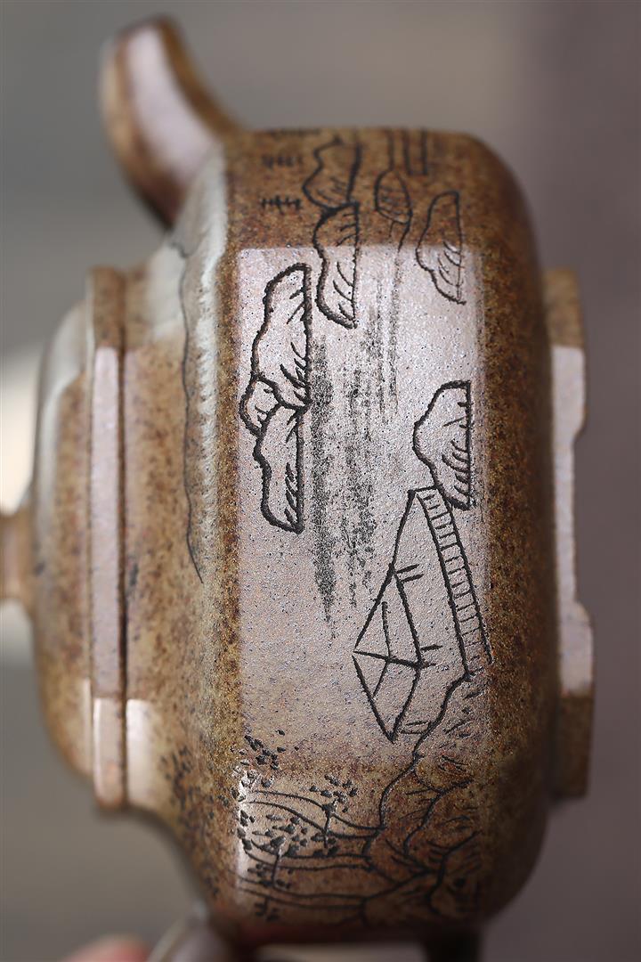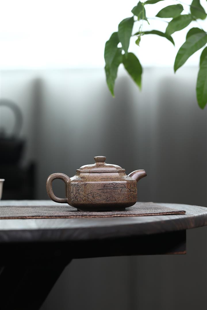 180cc原礦段泥火燒雲太湖石四方茶壺POT8925
