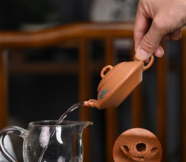 【泥料特點】砂土氣重,似淳實農民,日久使用,漸露鋒芒,養成變化,溫潤莊重。紫砂是壹種雙重氣孔結構的多孔性材質,氣孔微細,密度高。用紫砂壺沏茶,不失原味,且香不渙散,得茶之真香真味。紫砂使用越久,壺身色澤越發光亮照人,氣韻溫雅。紫砂壺長久使用器身會因撫摸擦拭,變得越發溫潤光澤。