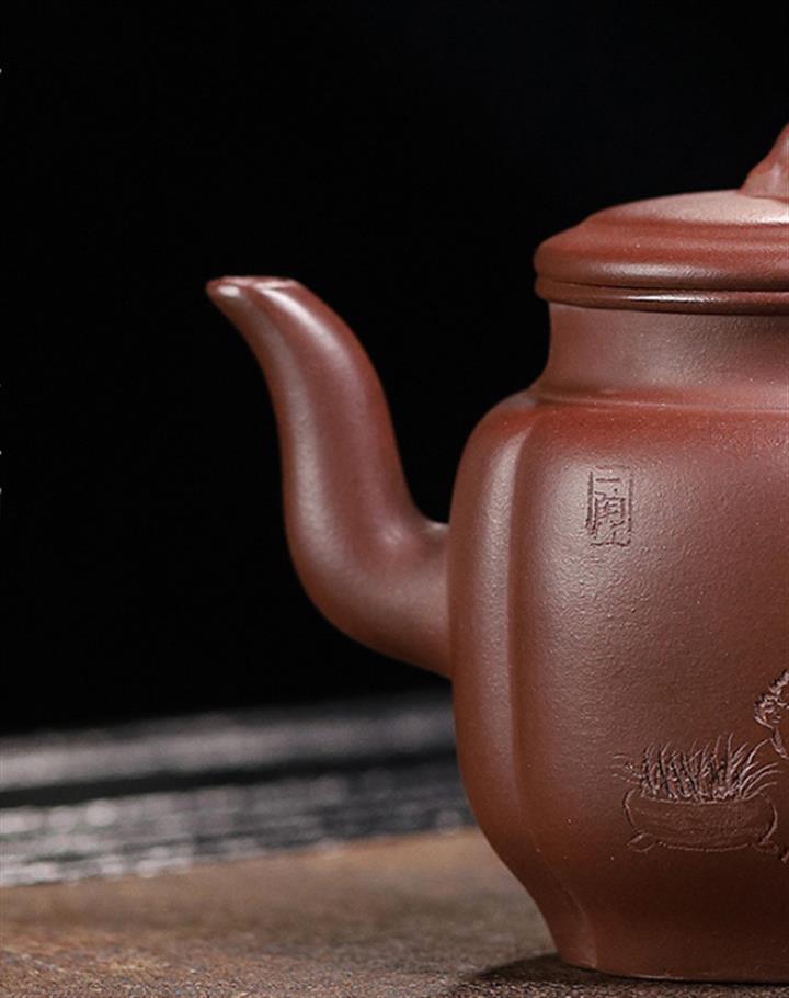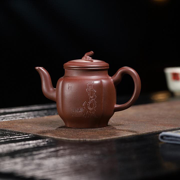 160cc原礦大紅袍泥繪秋水茶壺POT8929