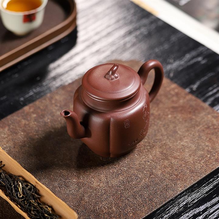 250cc原礦百目紫泥金刻暗香秦權茶壺POT8927