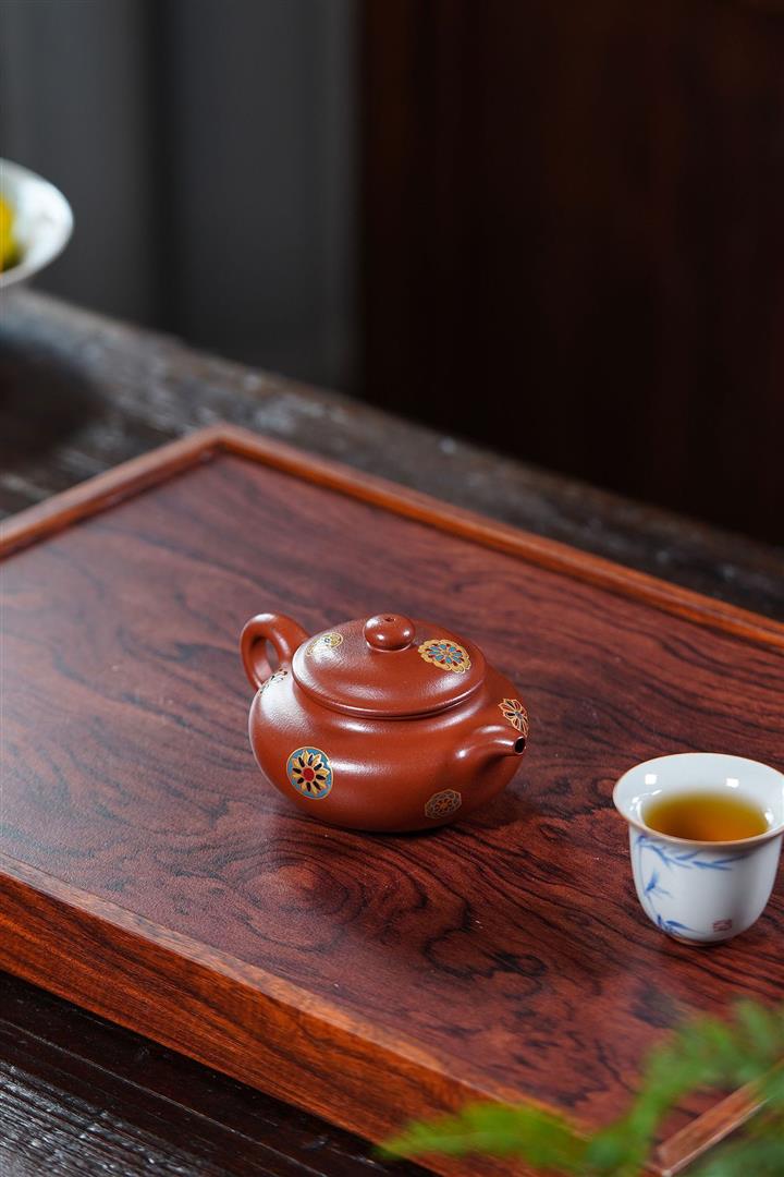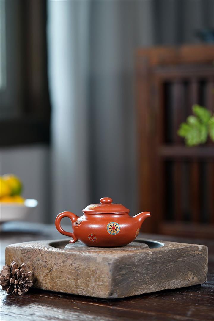 160cc原礦大紅袍泥繪秋水茶壺POT8929