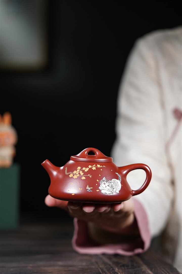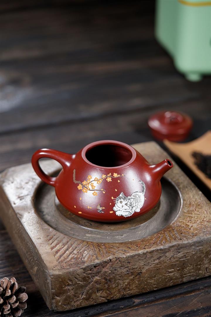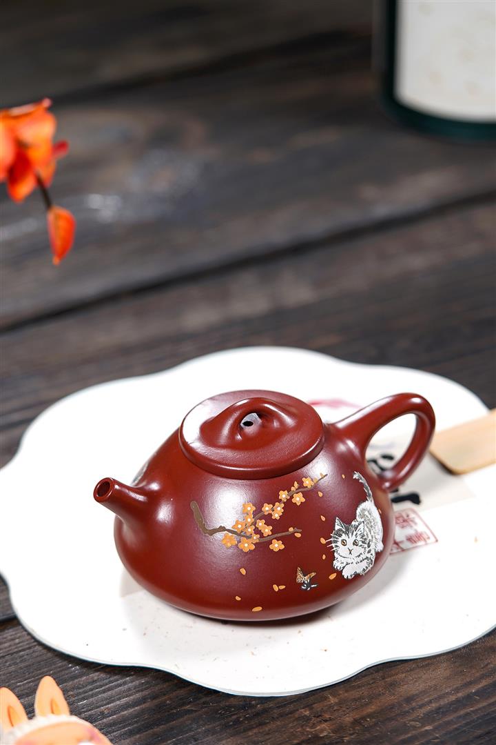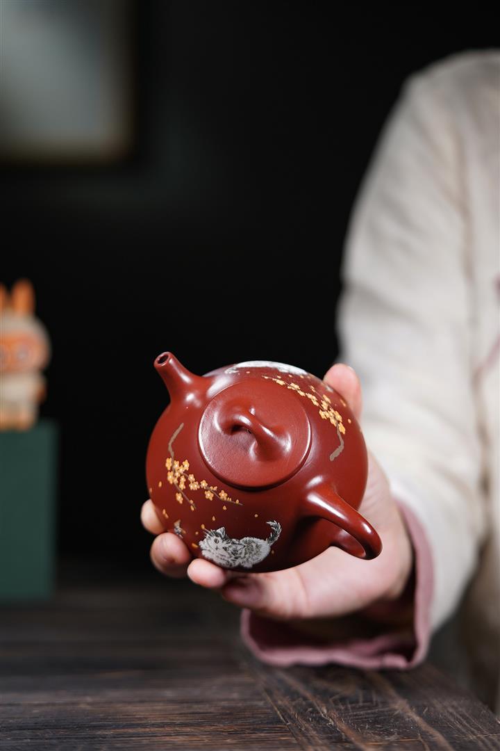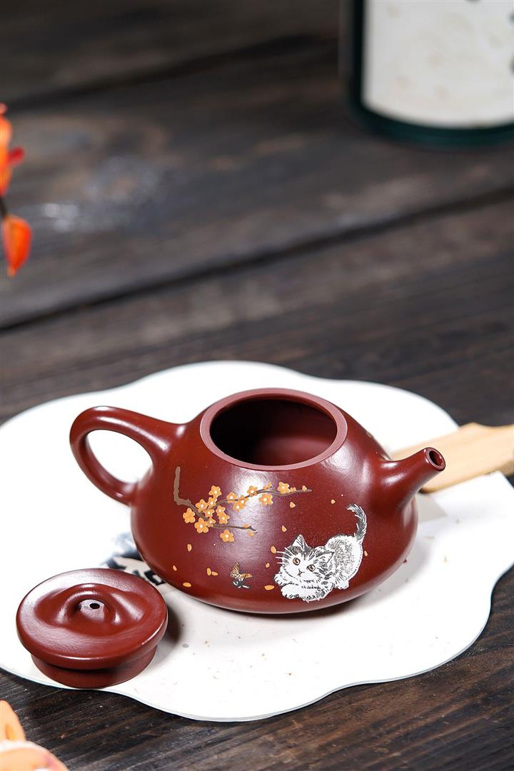 160cc原礦大紅袍泥繪秋水茶壺POT8929