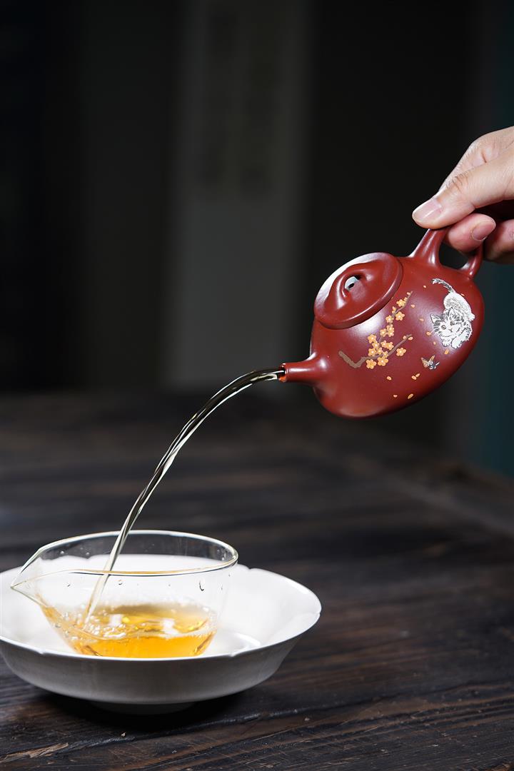 【泥料特點】砂土氣重,似淳實農民,日久使用,漸露鋒芒,養成變化,溫潤莊重。紫砂是壹種雙重氣孔結構的多孔性材質,氣孔微細,密度高。用紫砂壺沏茶,不失原味,且香不渙散,得茶之真香真味。紫砂使用越久,壺身色澤越發光亮照人,氣韻溫雅。紫砂壺長久使用器身會因撫摸擦拭,變得越發溫潤光澤。