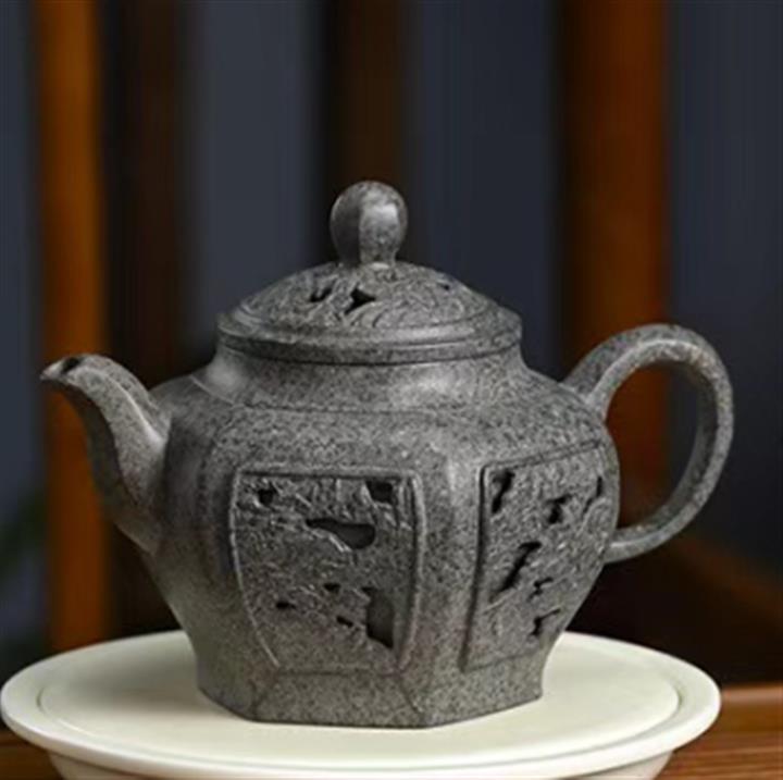 450cc原礦開花泥鏤空六方宮燈茶壺POT8932