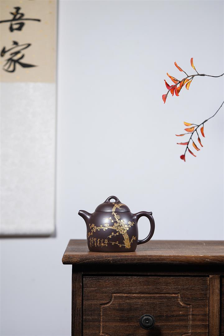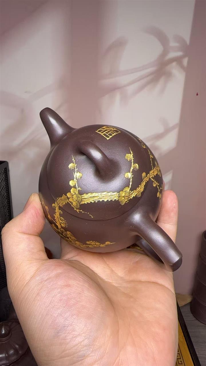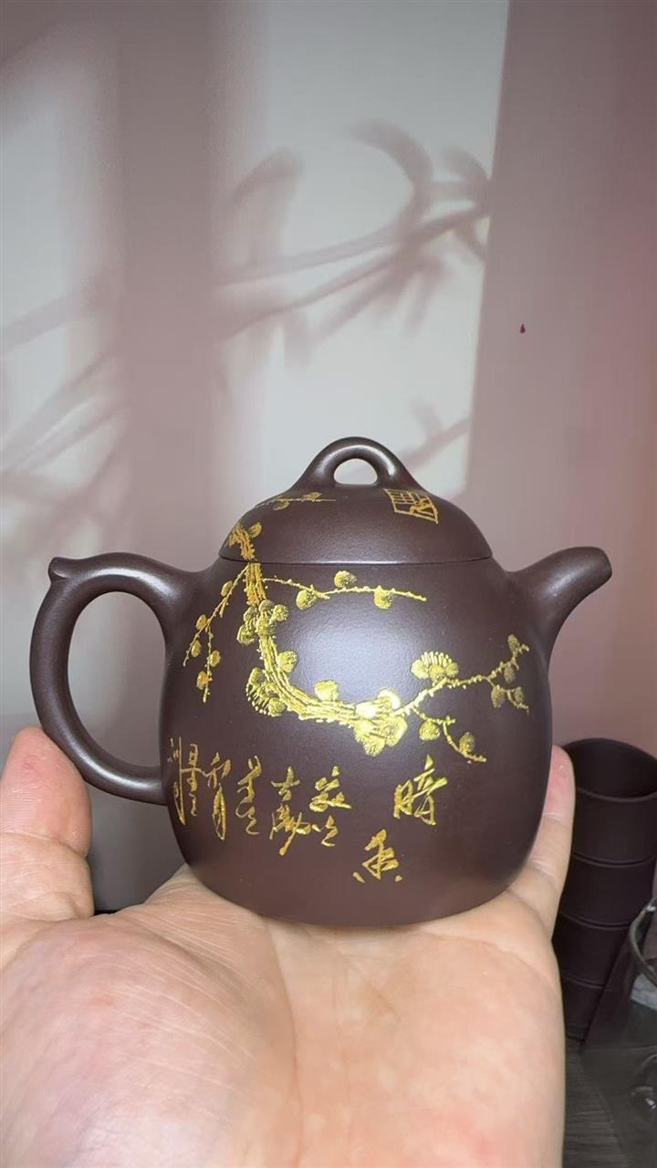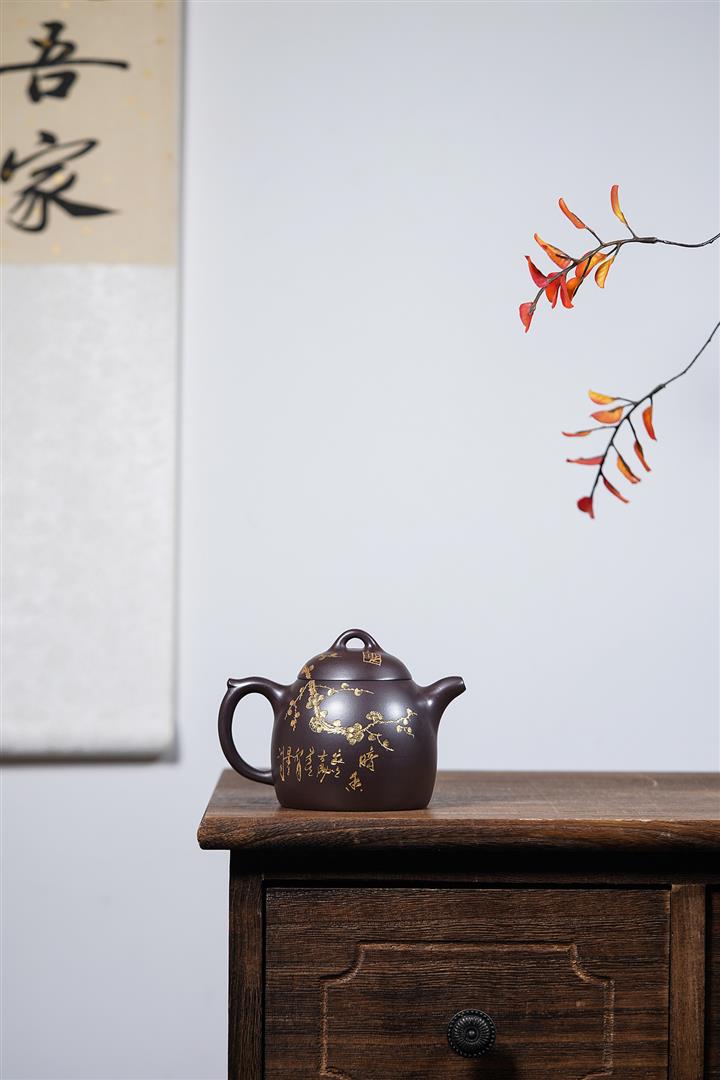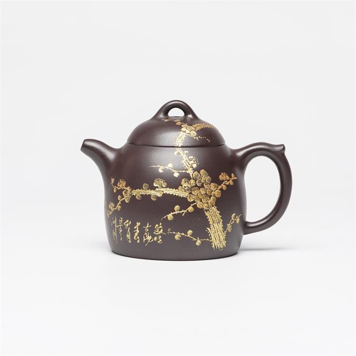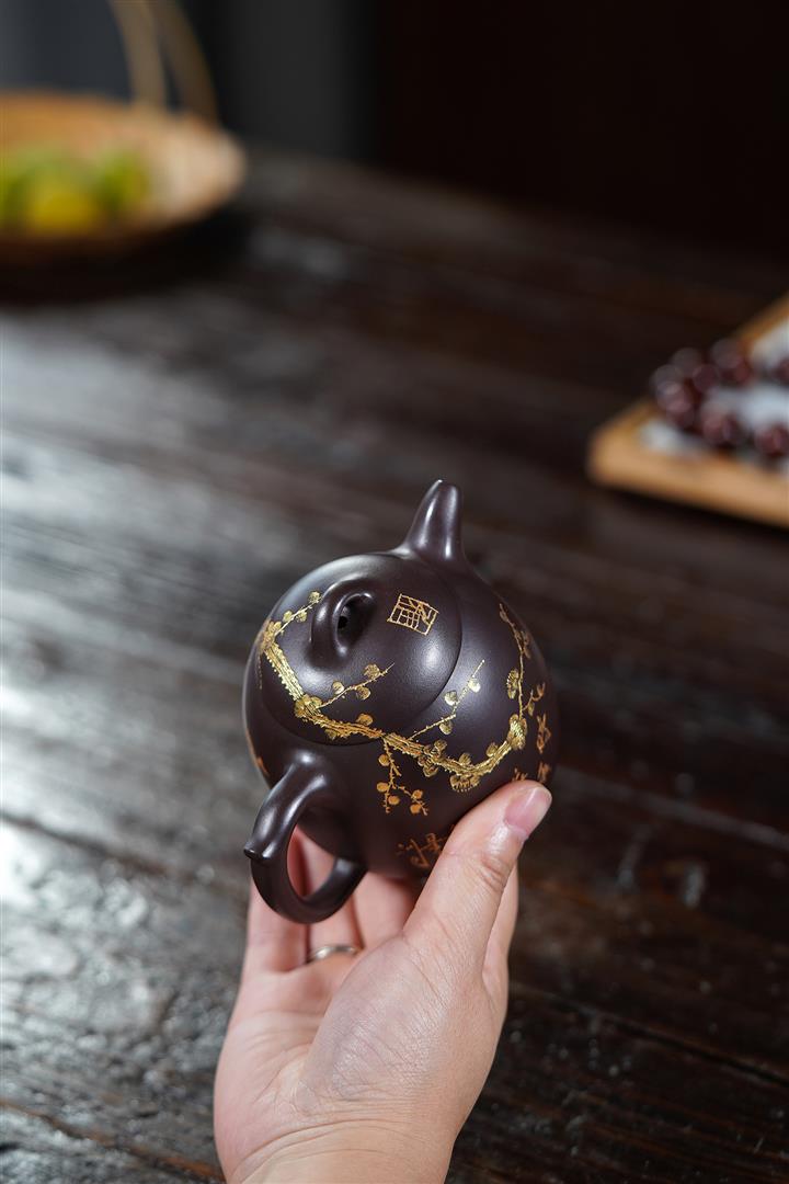 250cc原礦百目紫泥金刻暗香秦權茶壺POT8927