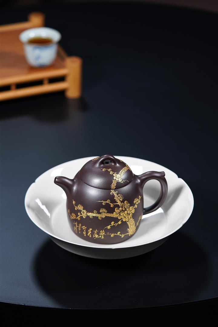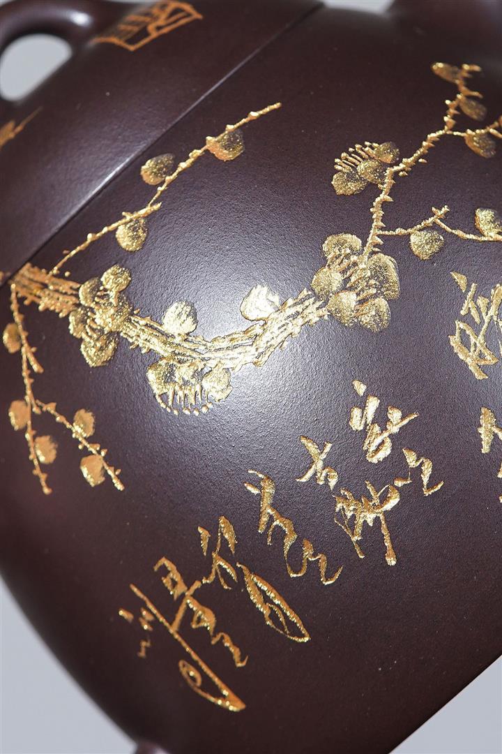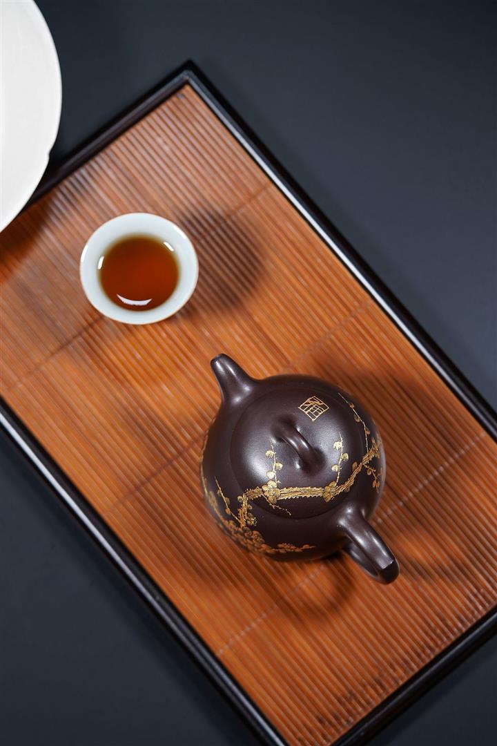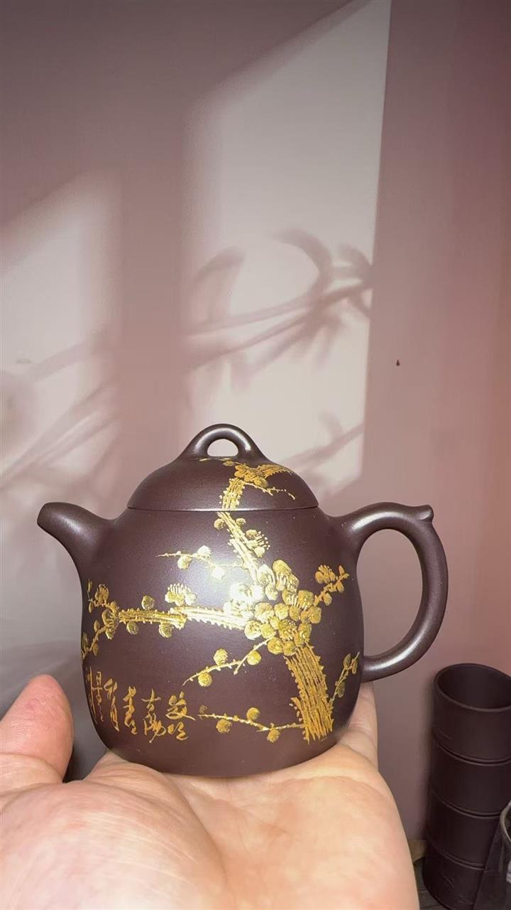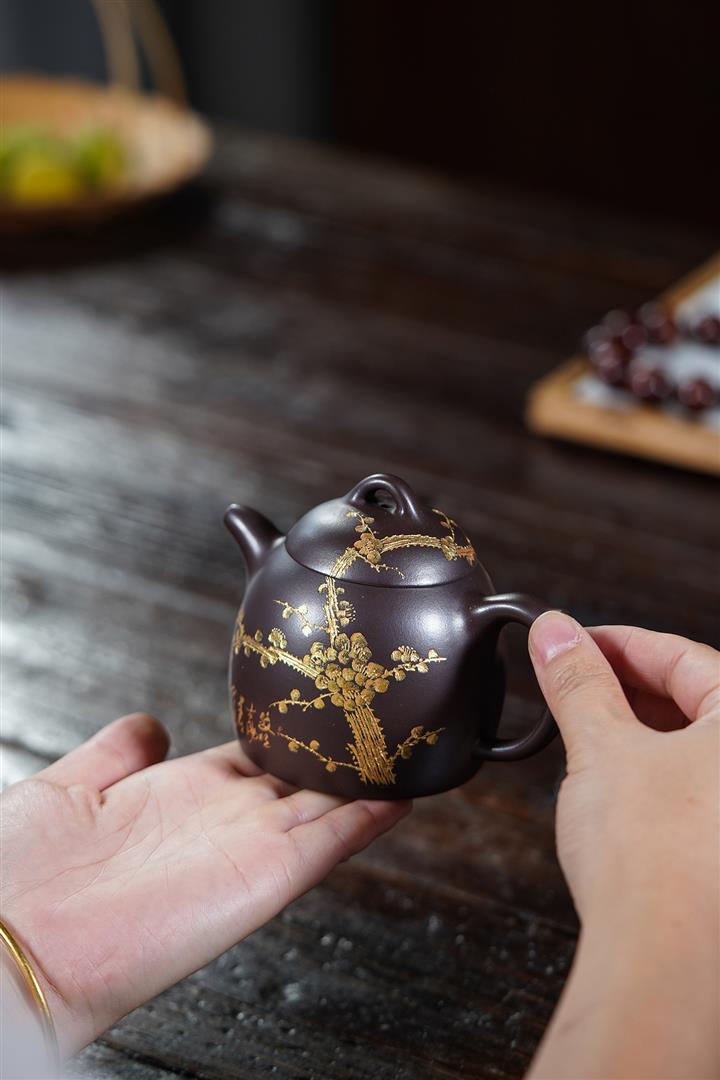 250cc原礦百目紫泥金刻暗香秦權茶壺POT8927