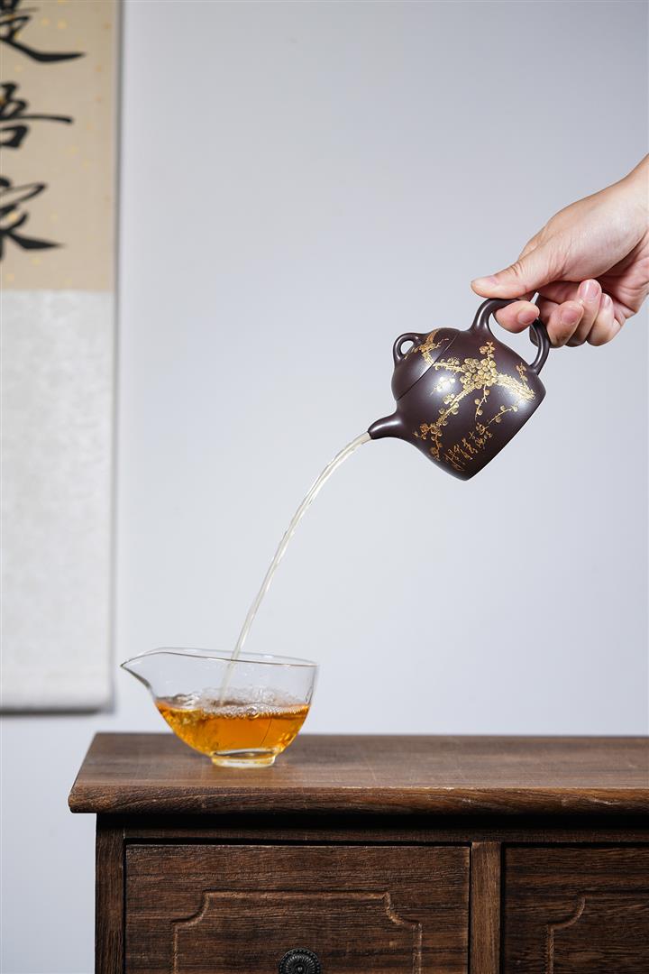 【泥料特點】砂土氣重,似淳實農民,日久使用,漸露鋒芒,養成變化,溫潤莊重。紫砂是壹種雙重氣孔結構的多孔性材質,氣孔微細,密度高。用紫砂壺沏茶,不失原味,且香不渙散,得茶之真香真味。紫砂使用越久,壺身色澤越發光亮照人,氣韻溫雅。紫砂壺長久使用器身會因撫摸擦拭,變得越發溫潤光澤。