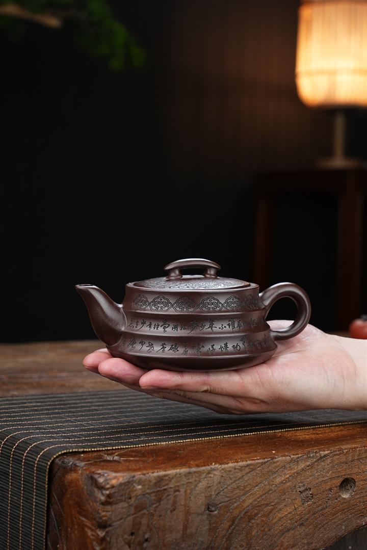 【作品介紹】此款壺形線條流暢,壺把,壺嘴,壺身壹氣呵成栩栩如生,是收藏把玩的好壺,泥料色澤古樸典雅,日久使用,漸露鋒芒,養成變化快,溫潤莊重,用其泡茶,使用的年代久,壺身就溫潤,泡出來的茶湯也就醇郁芳馨。
